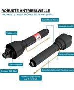 La prise de force est équipée d’un enregistrement de 1- 3/8 pouce en version standard avec 6 cannelures. Grâce aux joints de cadran robustes, graisseur intégré, et aux profils de raccordement triangulaires, cet outil s’adapte parfaitement aux travaux lourds.