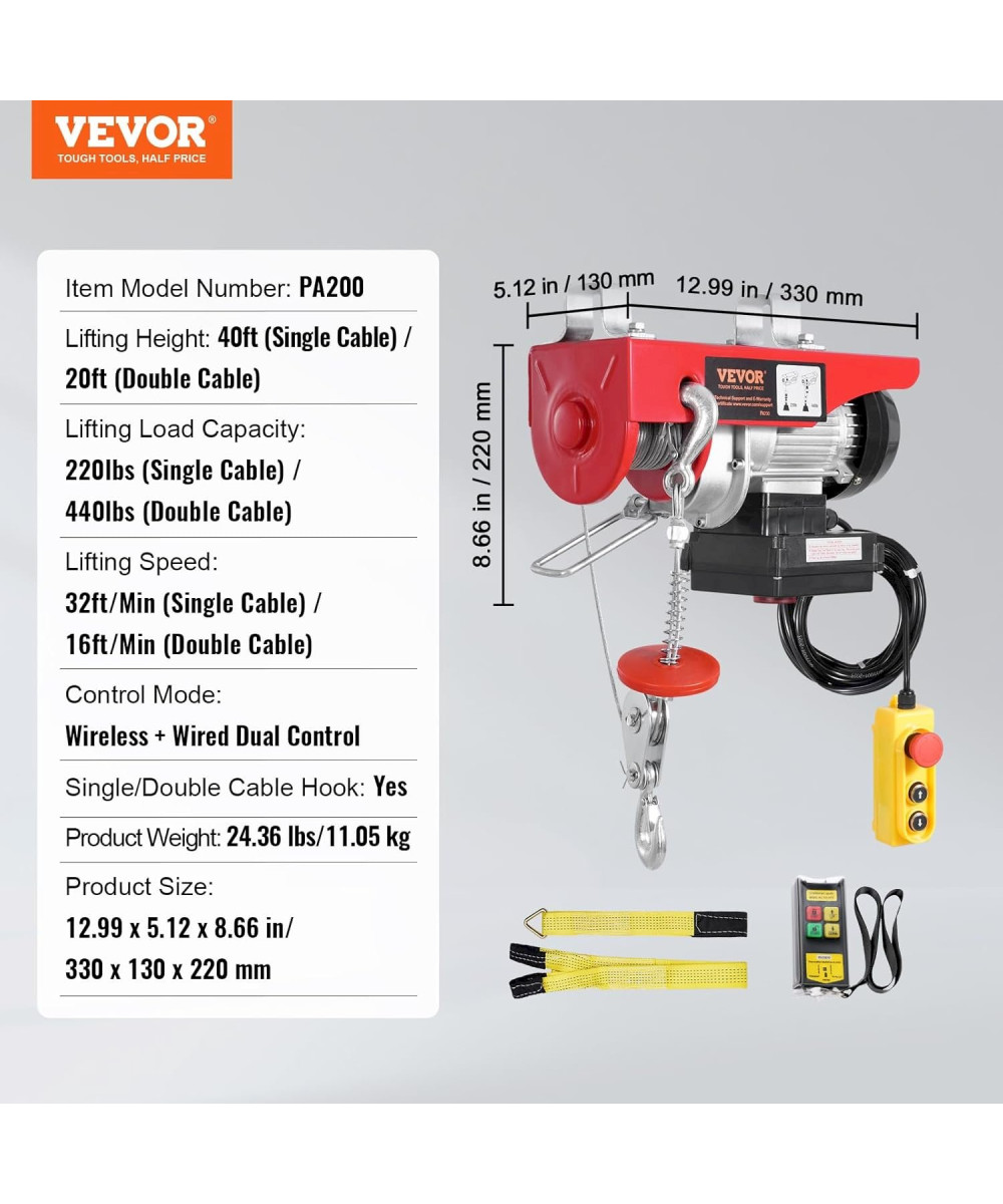 VEVOR Palan Électrique Charge Double Câble 200kg Télécommande Sans Fil