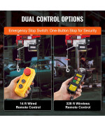 Options de double contrôle : Avec des télécommandes filaires et sans fil, ce lève-personne de plafond vous donne le contrôle. La télécommande filaire atteint 4,2 m (14 pi), tandis que la télécommande sans fil vous permet de travailler jusqu'à 100 m (328 pi). Il offre une excellente fonction de commutation qui permet une utilisation à une seule main pour soulever, abaisser et placer l'équipement.