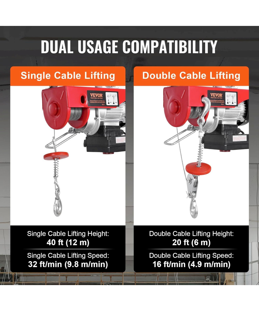 Capacité de charge de 440 lb/200 kg : Ce palan électrique peut facilement soulever de petits moteurs, des transmissions, de gros outils d'atelier ou des fournitures de construction. Capacité de charge de levage : 220 lb/100 kg (câble simple), 440 lb/200 kg (câble double).
