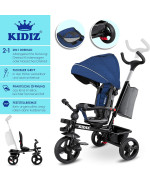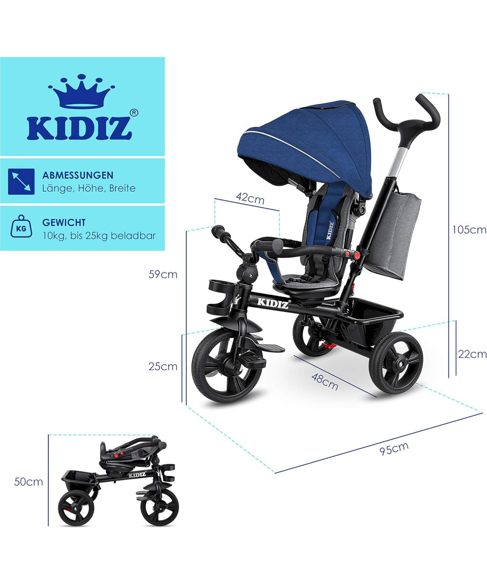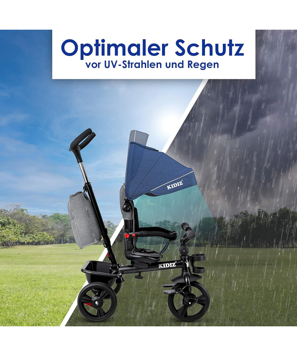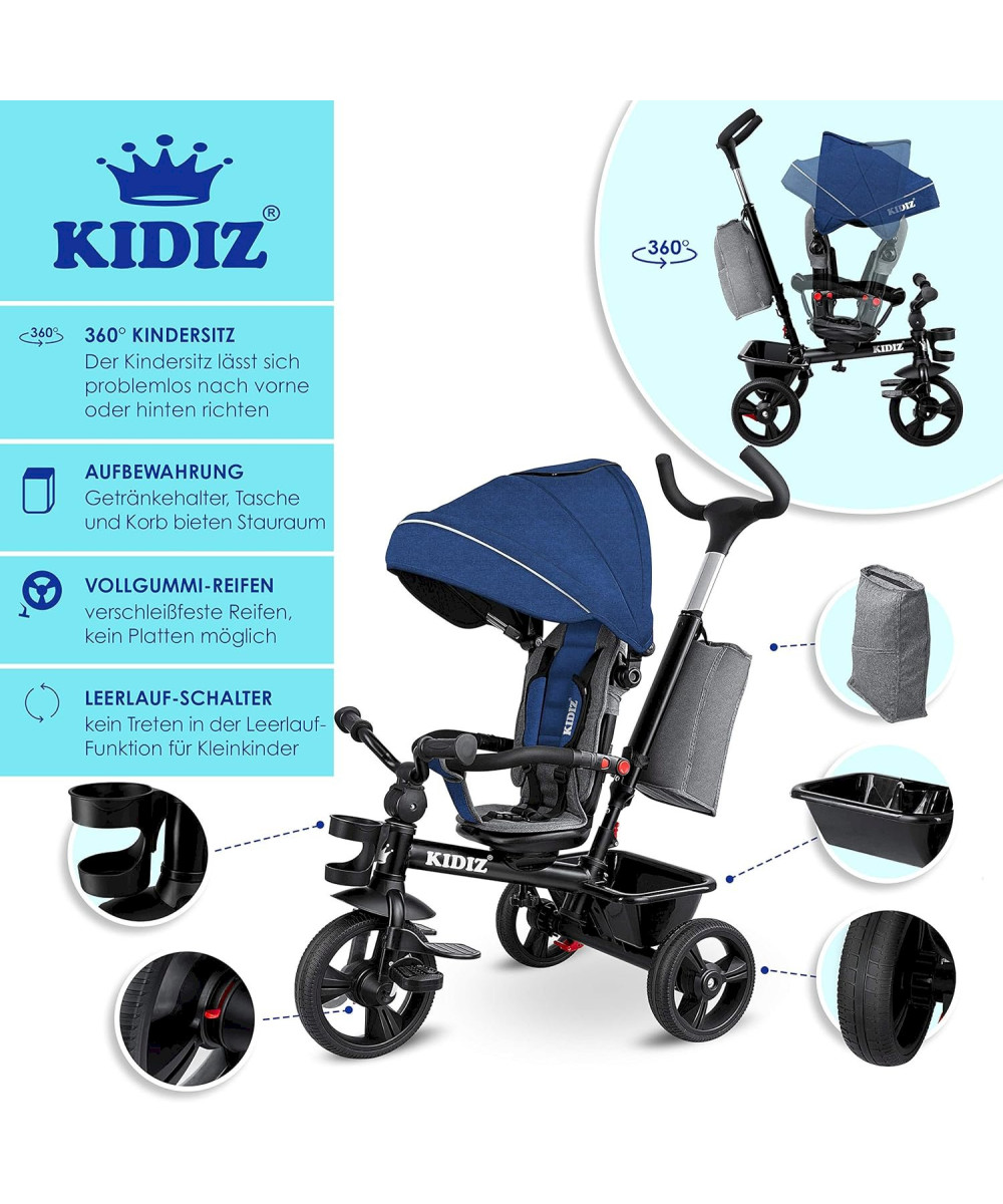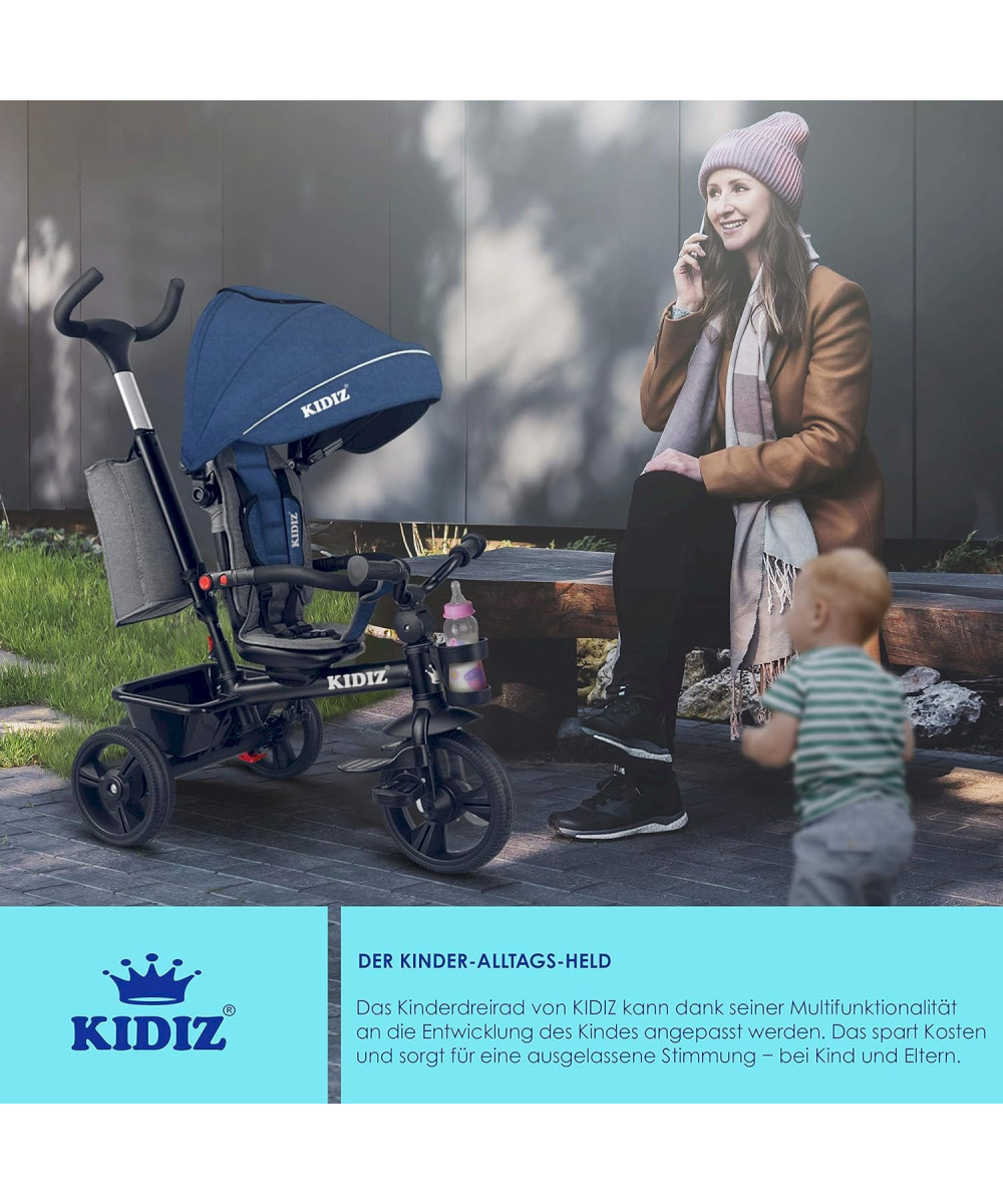 KIDIZ Tricycle 5 en 1 pour enfants avec barre de guidage bleu