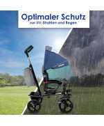 Le tricycle pour enfant est moderne et multifonctionnel et grandit avec l'enfant. Il combine poussette et tricycle. Auvent pliable avec filet transparent qui peut être complètement retiré.