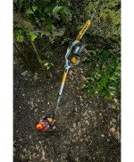 Grâce à sa portée maximale de 4,5 m, cette élagueuse polyvalente réduit les besoins en plateformes et en harnais, ce qui permet aux utilisateurs de s'occuper d'arbres et de buissons hauts en ayant les pieds au sol.