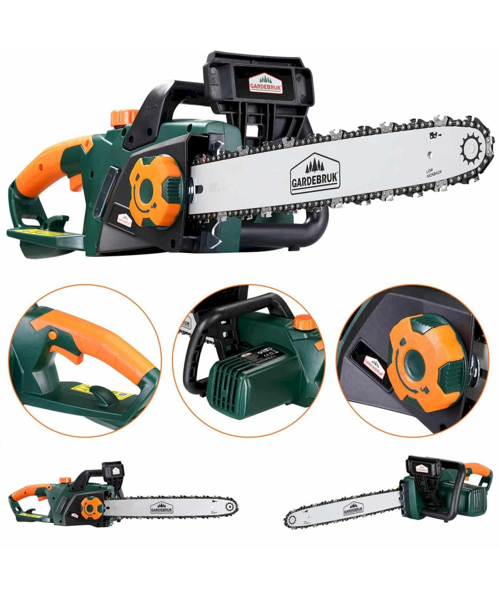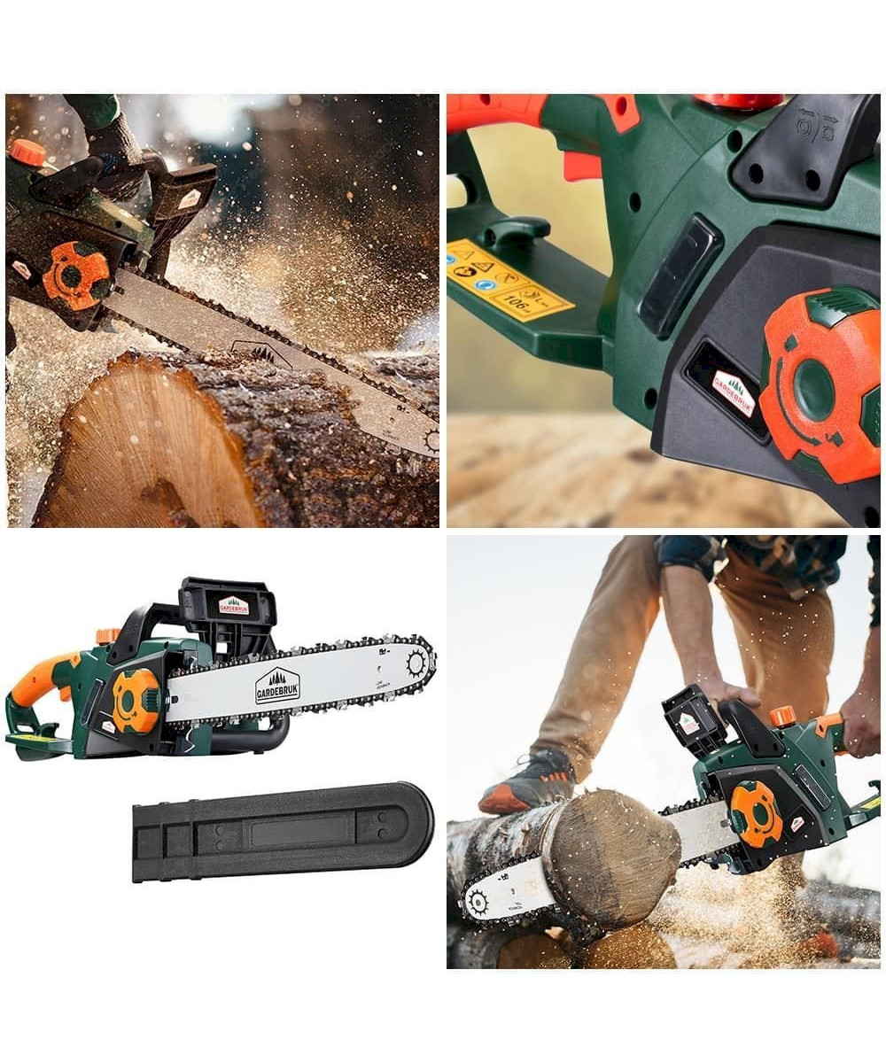 La tronçonneuse robuste de GARDEBRUK est très polyvalente et peut donc être utilisée autour de la maison, de plus elle dispose d´un moteur puissant de max. 2800 W ainsi qu´un guide-chaîne original Oregon de 51 cm avec chaîne de qualité. La longueur de coupe est de 46 cm.