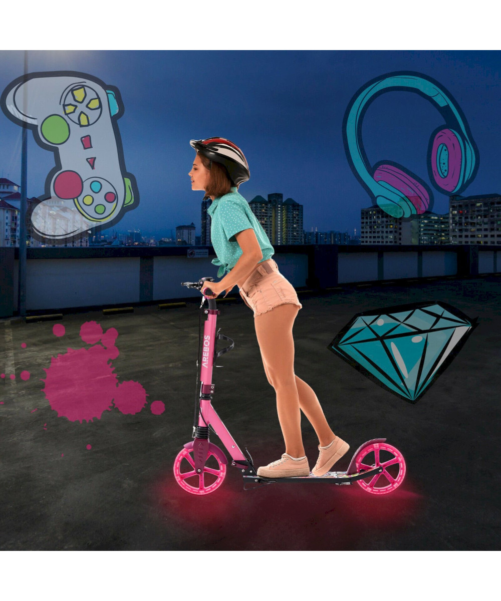 AREBOS Trottinette avec roues LED Rose