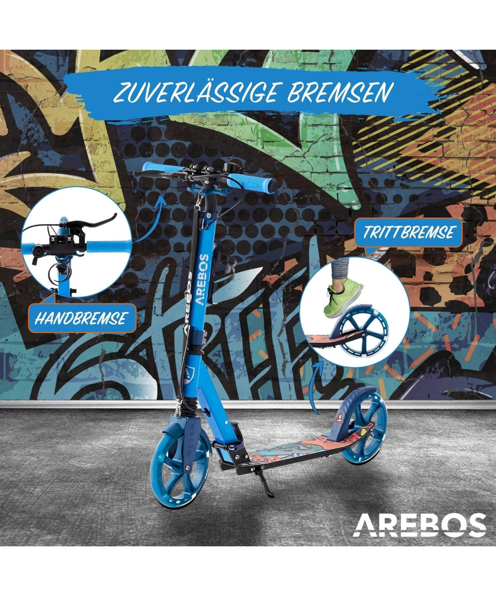 AREBOS Trottinette Scooter avec pneus LED - Bleu