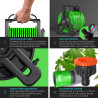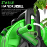 Wählen Sie aus ganzen 9 Einstellungsmodi um den Wasserstrahl optimal an Ihre Arbeit anzupassen. Dank des ergonomisches Griffs mit Einrast-Klick-System für eine automatische Bewässerung und dem 30m langen Schlauch sind Ihnen keine Grenzen gesetzt. Die stabile Handkurbel mit praktischer Ein- und Ausklappfunktion sorgt dafür, dass der Schlauch nach der Verwendung mühelos eingekurbelt werden kann.