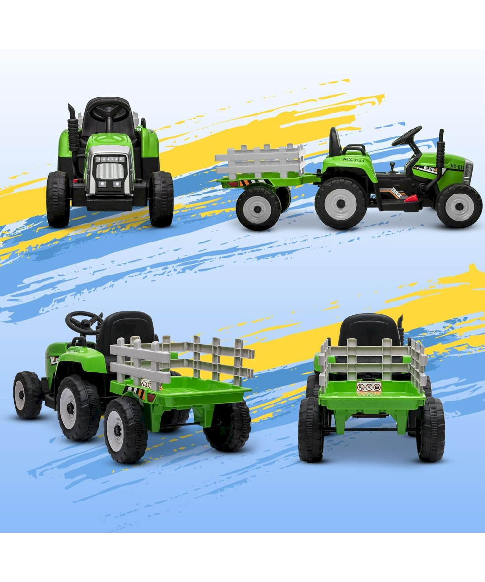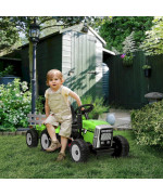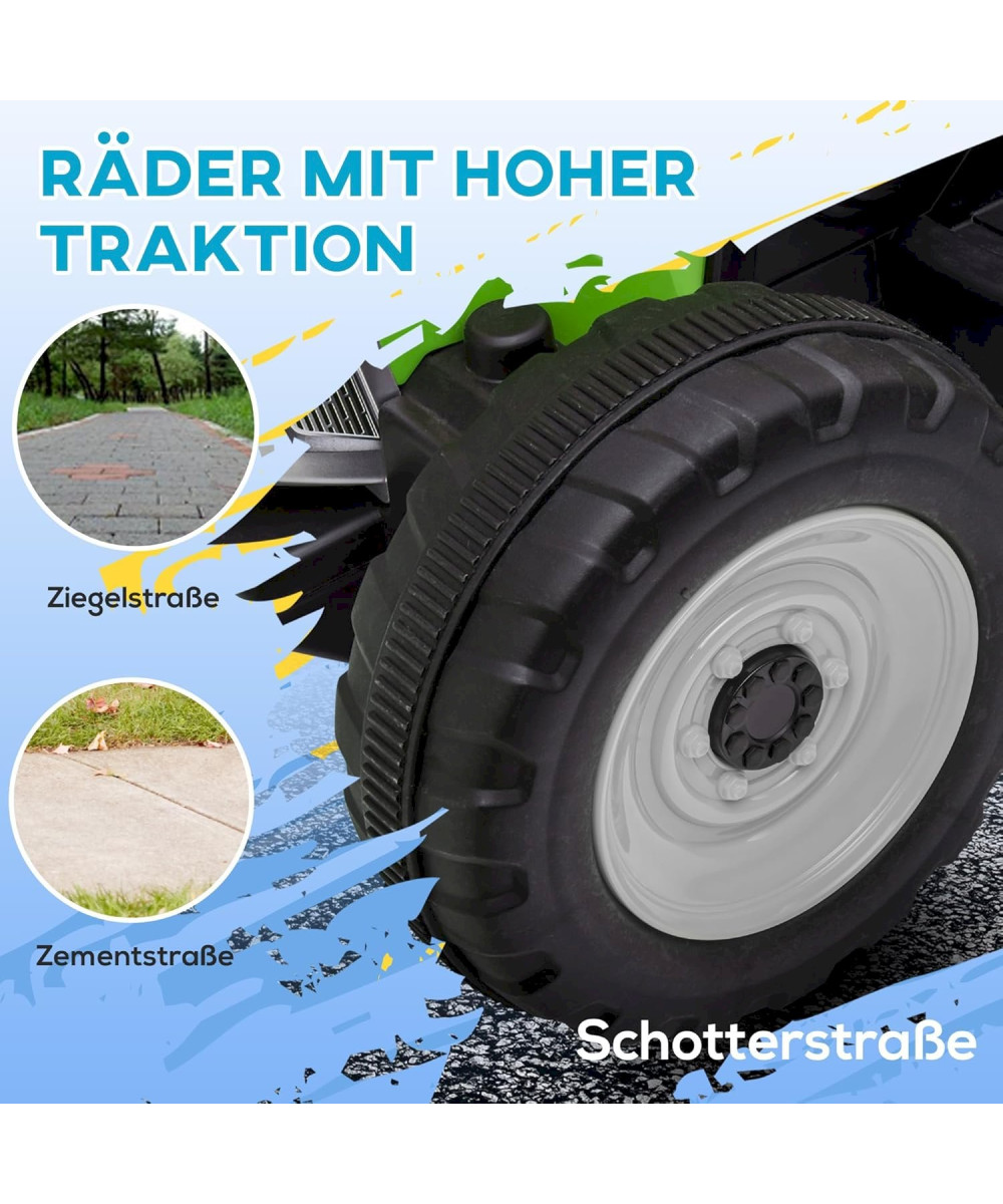 HOMCOM Tracteur électrique Vert avec remorque amovible pour enfants de 3 à 6 ans