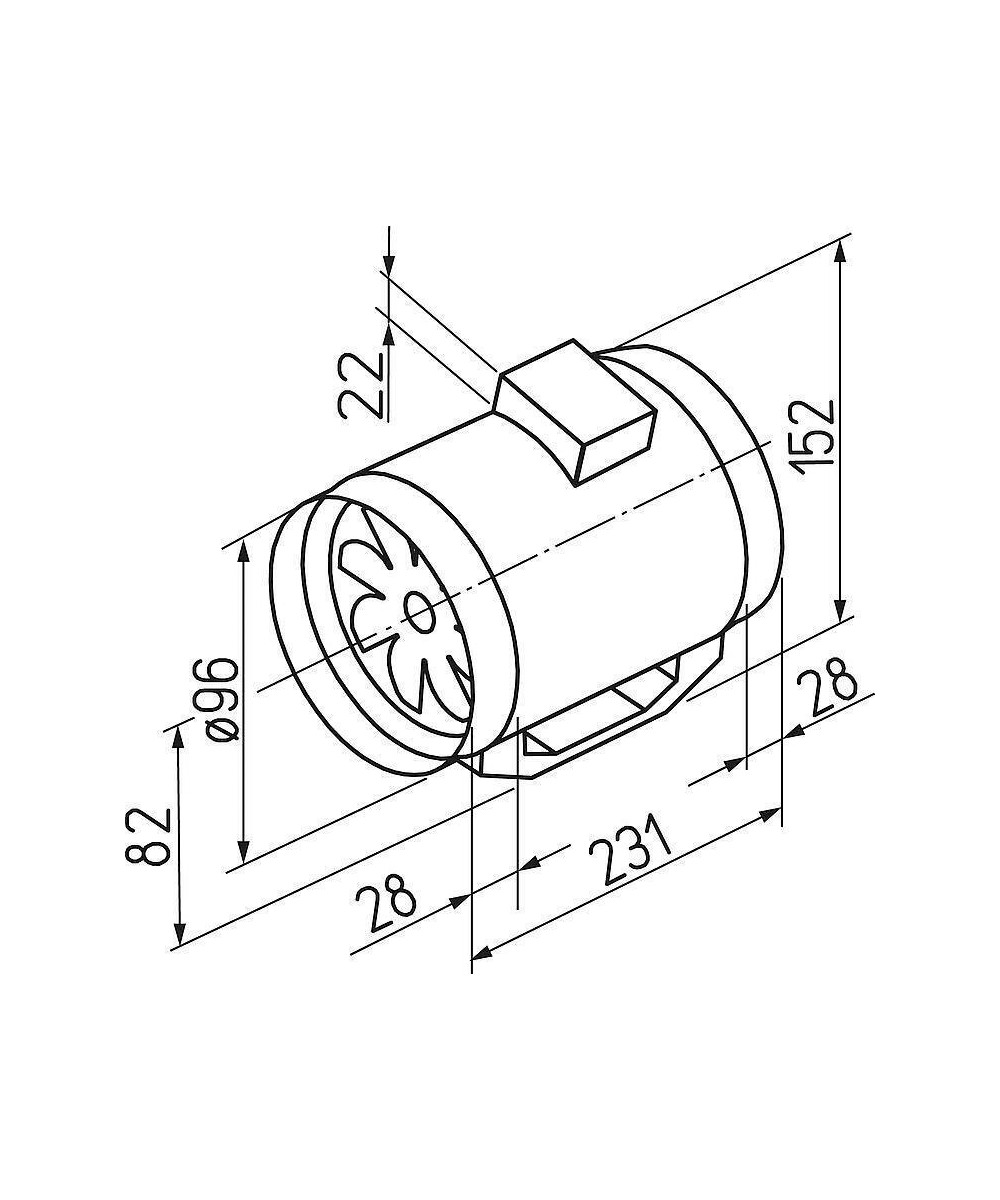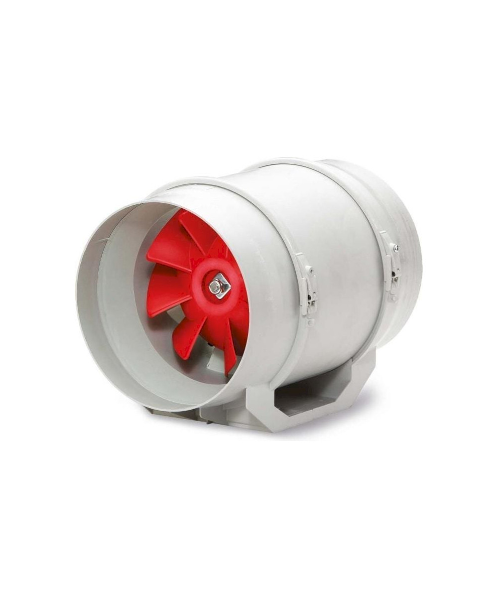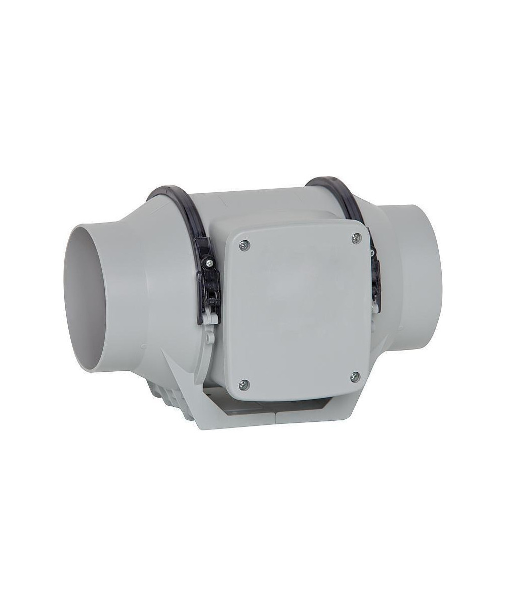 Ventilateur tubulaire pivotant à haute performance de pression et de volume, pour un montage peu encombrant dans le tracé du tuyau. Boîtier en plastique résistant aux chocs et à la corrosion, couleur gris clair, avec console de montage moulée pour une installation simple au mur ou au plafond ainsi que des raccords d'aspiration et de soufflage correspondant aux diamètres de tuyaux normalisés. En desserrant les étriers de serrage, l'unité de ventilation avec boîte à bornes peut être tournée dans toutes les positions et retirée pour l'entretien et le nettoyage. Livré avec chevilles et vis. Roue semi-axiale, huit pales à courbure spatiale en thermoplastique. Fonctionnement sans vibrations grâce à un équilibrage dynamique selon le niveau de qualité G 6.3 VDI 2060 et DIN ISO 1940. Moteur de condensateur fermé, sur roulement à billes, avec protection contre l'humidité, classe d'isolation F, pour un fonctionnement continu. Ne nécessite pas d'entretien et ne génère pas d'interférences. Protection du moteur par protection thermique contre les surcharges dans le bobinage.