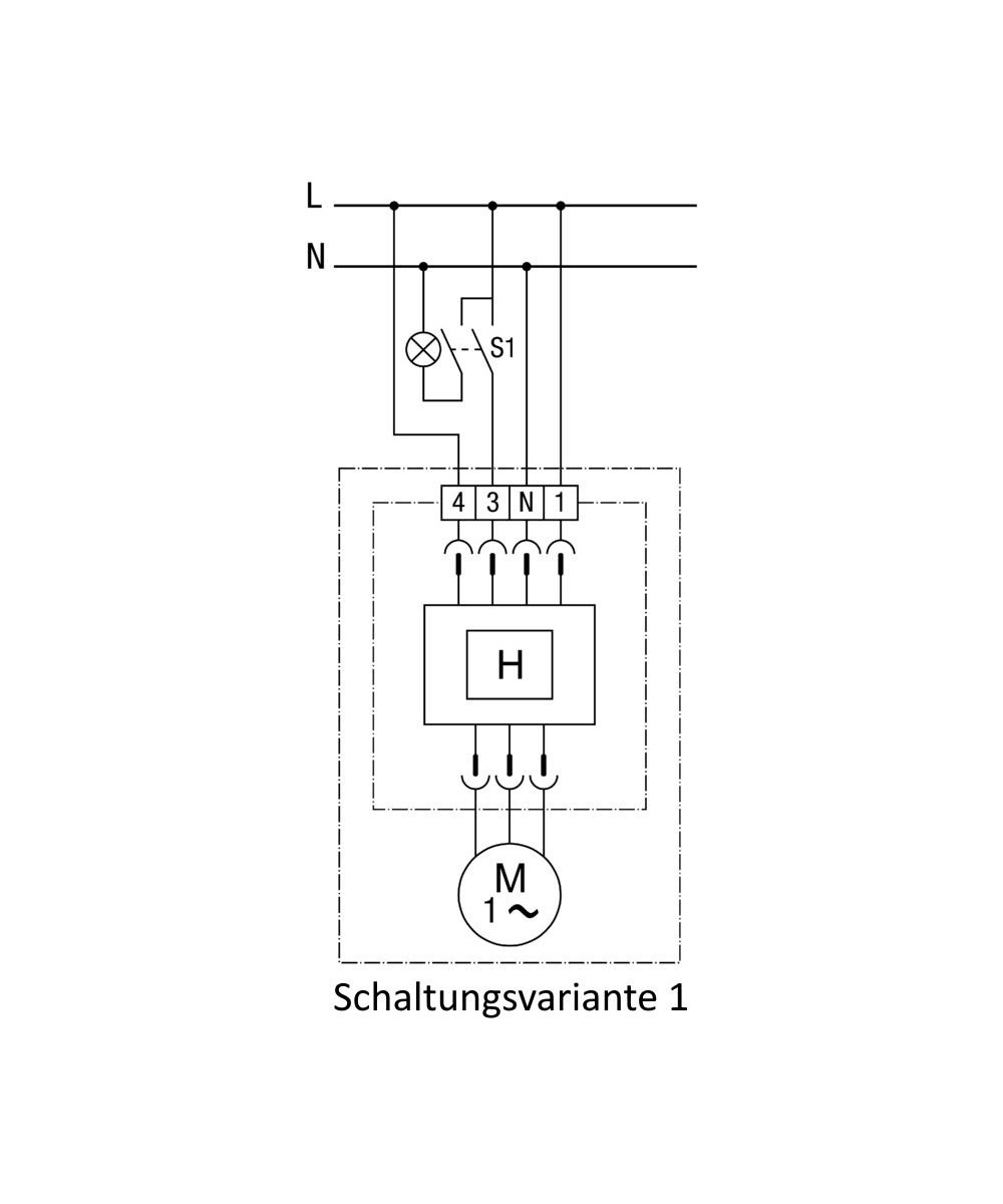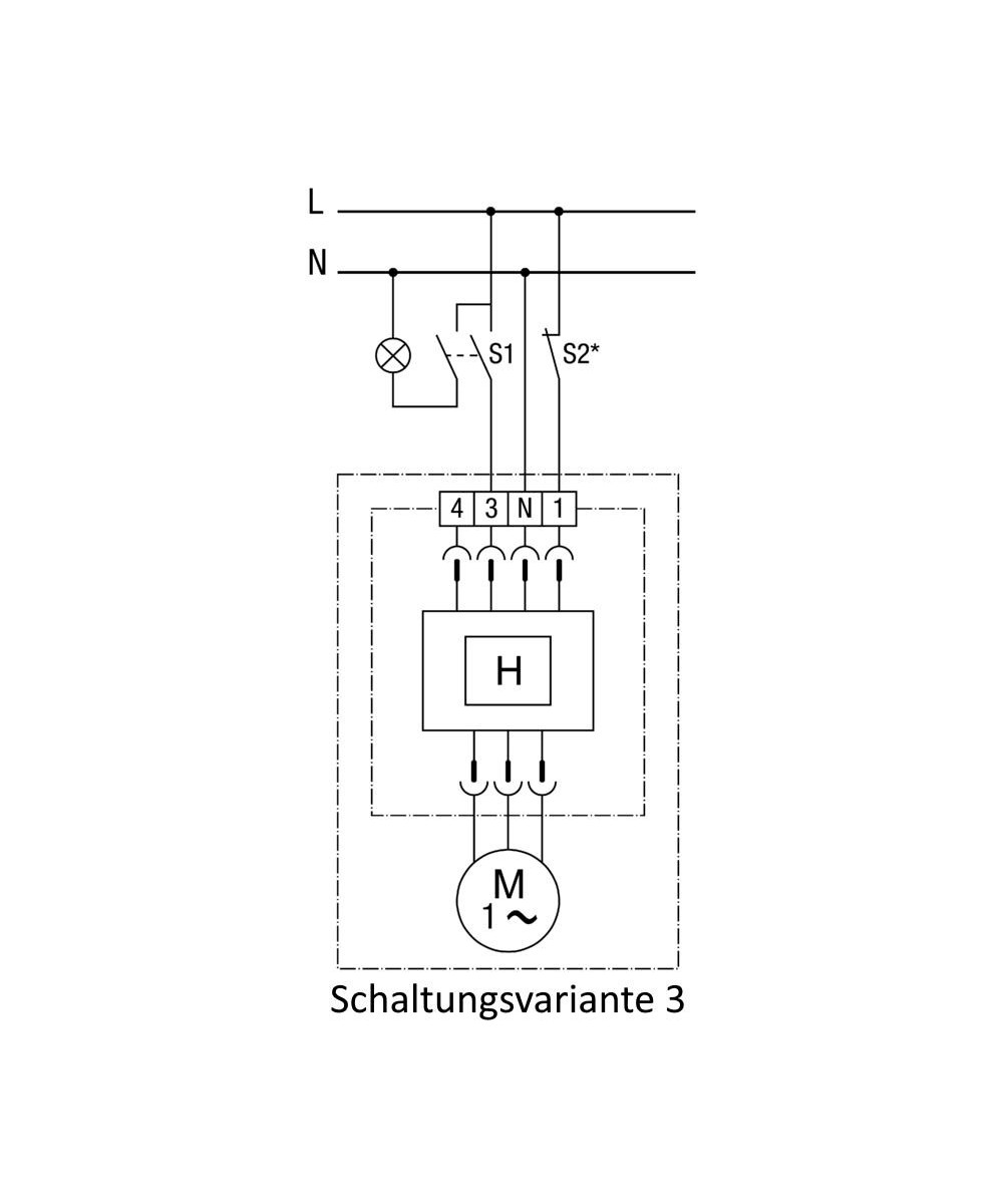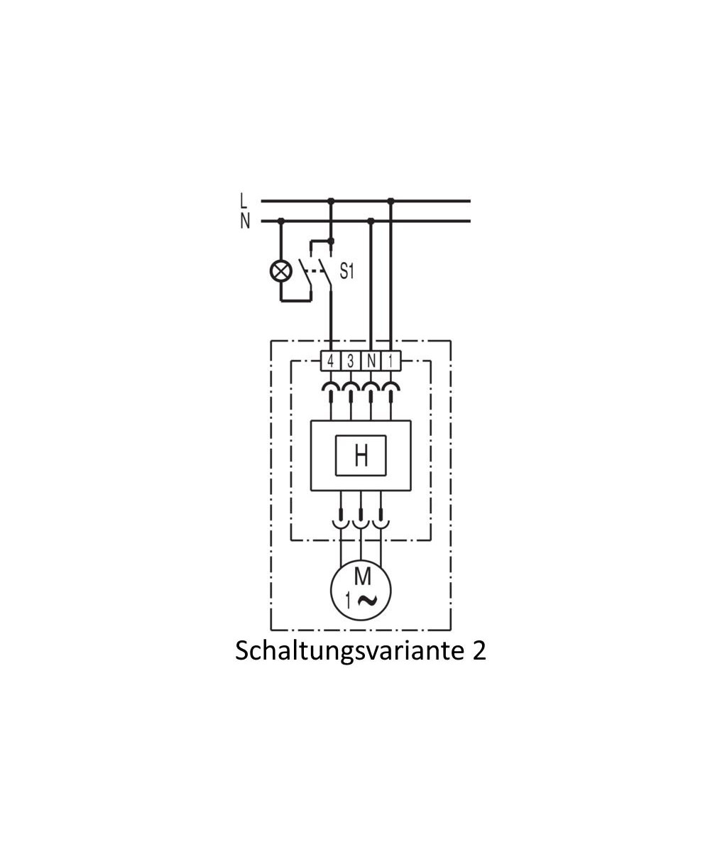 En cas d'utilisation d'un interrupteur à 1 pôle, des retours de tension peuvent se produire. Combinaison avec un condensateur X2 nécessaire ! - Variante de réglage 2