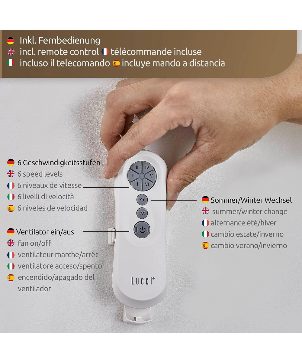 - Télécommande incluse : 6 vitesses / off, mode été / hiver