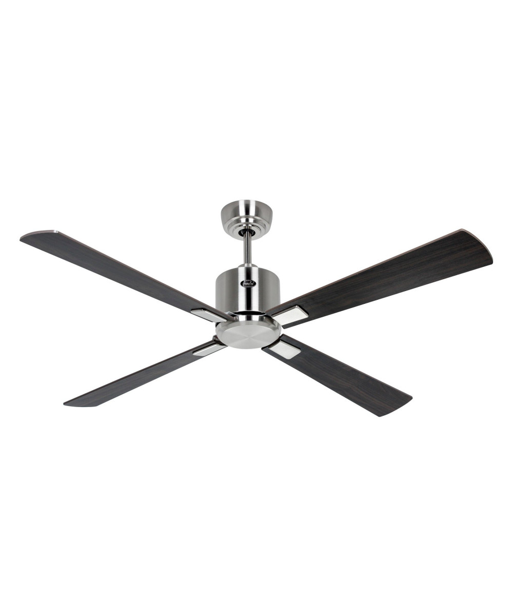 CasaFan ECO NEO III 132 BN-NB/KI, Energiespar Deckenventilator, Ø 132 cm, Gehäuse Chrom gebürstet, 4 Wendeflügel Nussbaum/Kirschbaum (wahlweise 2,3,4 montierbar), 100-240 V 50-60 Hz, DC/EC Motor 2,3-27 W, inkl. Funk-Fernbedienung (Motor 6 Stufen, Vor-/Rückwärtslauf - Sommer/Winter -, Schlaftimer, Licht ein/aus/dimmen) und Wandhalter, Zeitlupenstufe, Drehzahl max. 30-185 U/min, inkl. 2 Deckenstangen (150 und 80 mm), Abstand Decke - Flügel 360 mm (290 mm mit kurzer Deckenstange, 270 mm mit gekürzter Deckenstange), Montage an Schrägen bis 23°, gewuchteter Motor und Flügel, für Raumgrößen bis 25 m², Zubehör wie Leuchten, Austauschflügel und längere Deckenstangen erhältlich