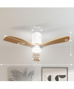 HOMCOM Ventilateur de plafond 117cm avec lumière LED Brun clair