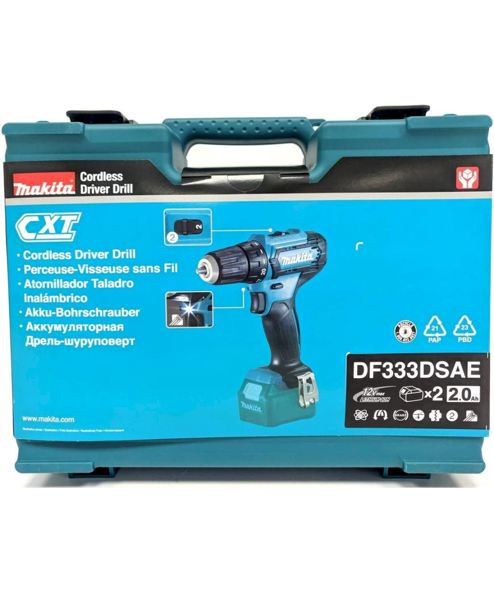 Makita Akku-Bohrschrauber DF333DSAE 12V 2x2,0Ah Akku + Lader im Handwerkerkoffer