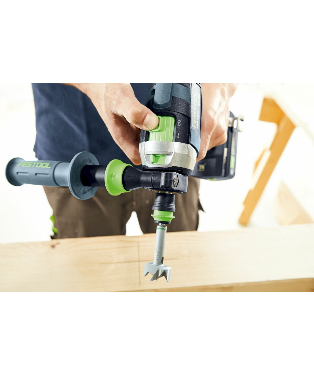 Für den blitzschnellen Wechsel zwischen Bohren, Senken und Schrauben: Das seit 2001 bewährte CENTROTEC Werkzeugfutter ist Bohrfutter und Bithalter in einem. Und das bei halber Größe und einem um 80 % geringeren Gewicht als bei Standardbohrfuttern: eine echte Festool Erfindung in der gewohnten Festool Qualität. - Neueste Generation bürstenloser EC-TEC Motoren