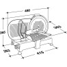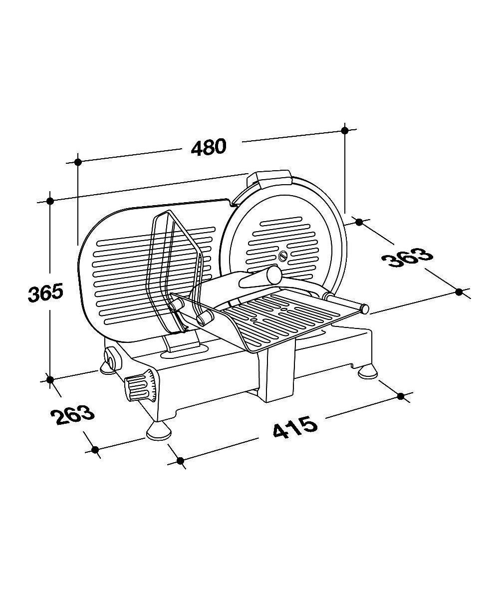 - Die Aufschnittmaschine hat einen professionellen Elektromotor mit Belüftung und Schalldämpfung zum Schutz vor Überhitzung.