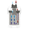 Die Wasserführung innerhalb des Aquarienfilters sorgt dafür, dass das Aquarienwasser zuerst an der UVC-Klärer-Einheit vorbei geführt wird. Durch die UVC-Strahlung dieser UV-Lampe werden schädliche Algen, Bakterien und Krankheitskeime abgetötet und die Algenbildung bleibt unter Kontrolle.
