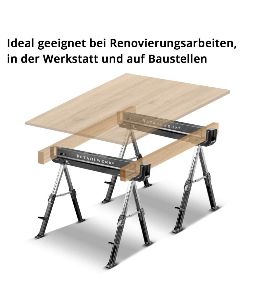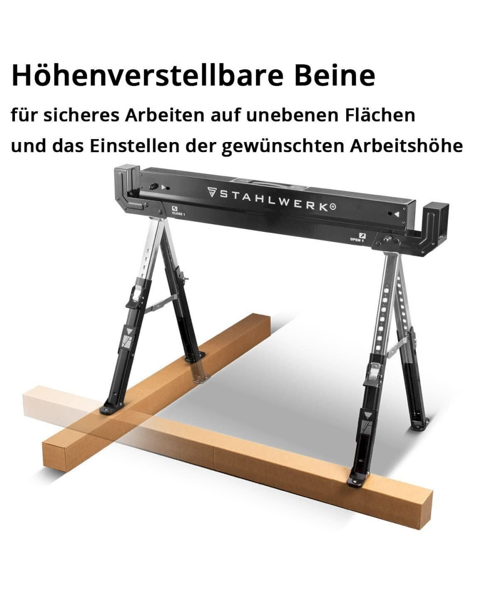 - Robuste, leichte und hoch belastbare Sägeböcke / Arbeitsböcke mit einer maximalen Tragkraft von 1.180 kg pro Paar.