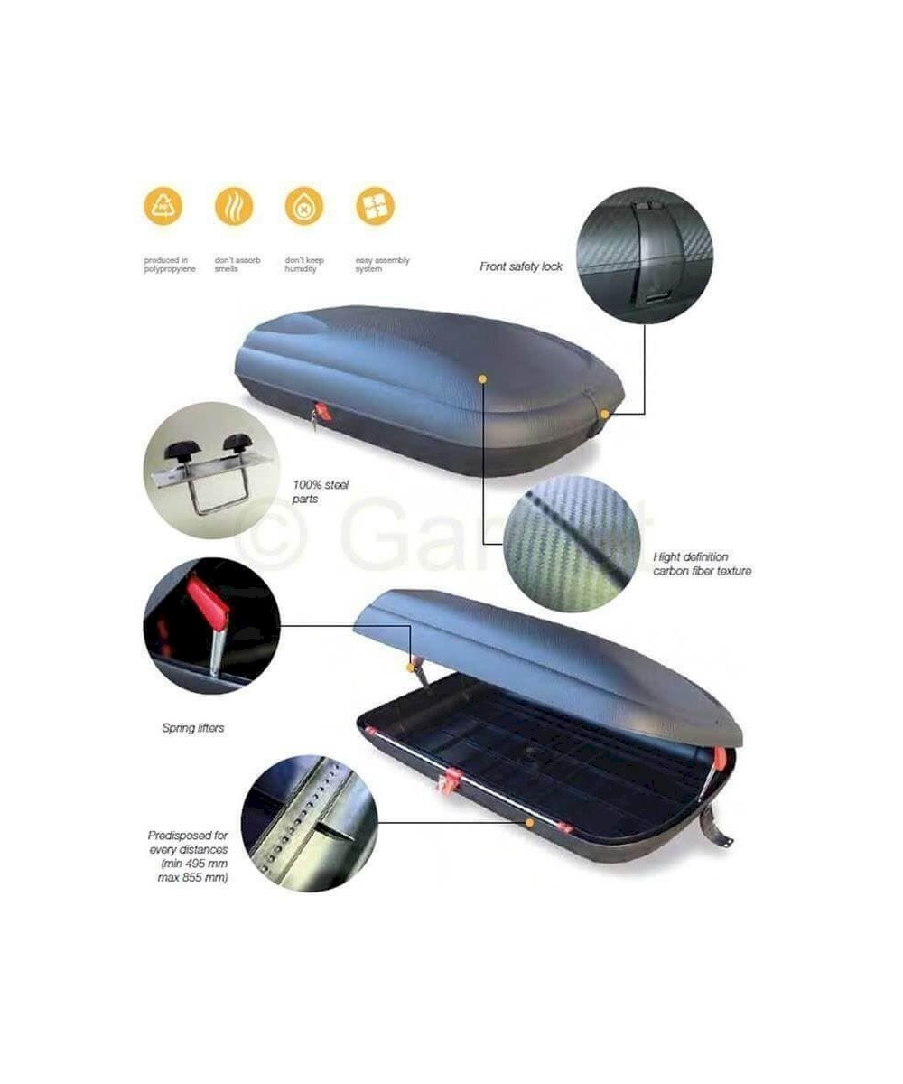 Dank enger Zusammenarbeit mit einigen der hellsten Köpfe aus der Automobilindustrie ist diese sportliche und elegante Dachbox im Carbon-Desing entstanden. Studien bezüglich Aerodynamik und Crash-Tests machen diesen Dachkoffer ökologisch (niedriger Treibstoffverbrauch und geräuscharm) und sicher!