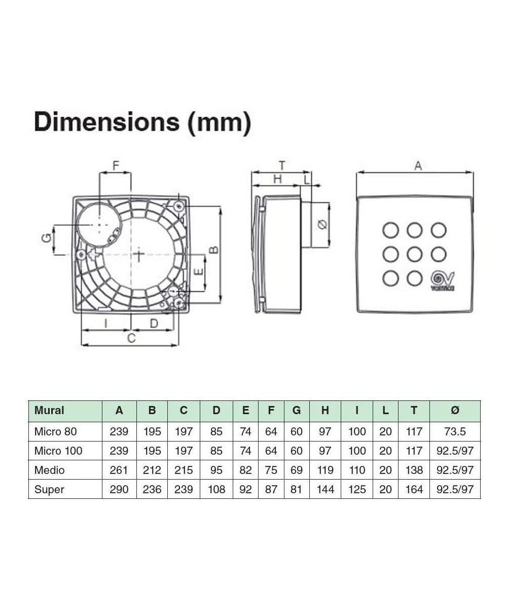 - Montage: Aufputz, beliebige Position, seitlich versetzter Ausblassstutzen mit 360° drehbarer Frontblende