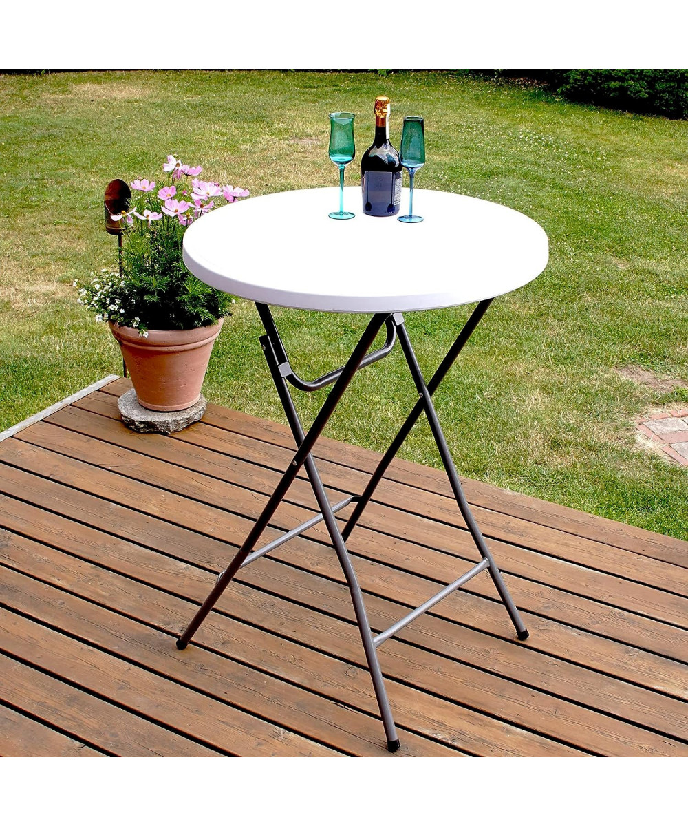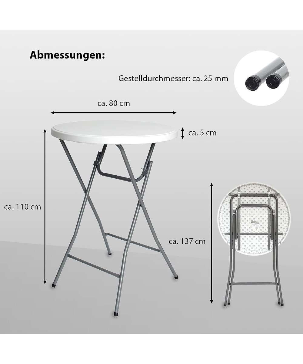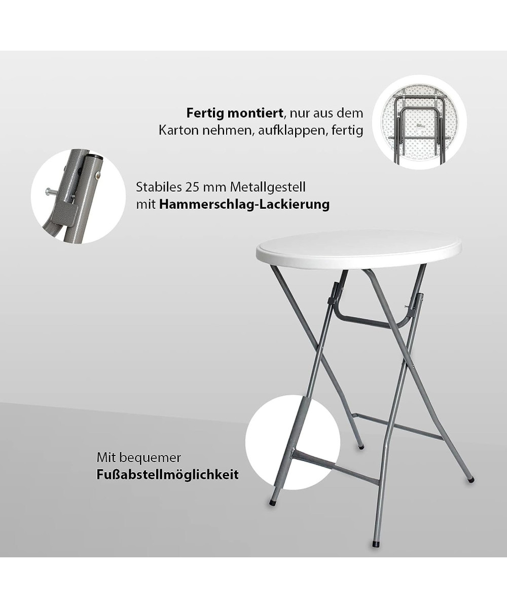 Durch die Klappfunktion kann der Partytisch einfach transportiert werden. Der Stehtisch lässt sich mit wenigen Handgriffen aufbauen