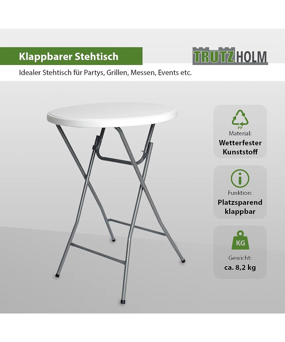 Dieser stabile Stehtisch der Marke TrutzHolm ist der perfekte Tisch für Deine nächste Party, egal ob im Garten oder im Partykeller.