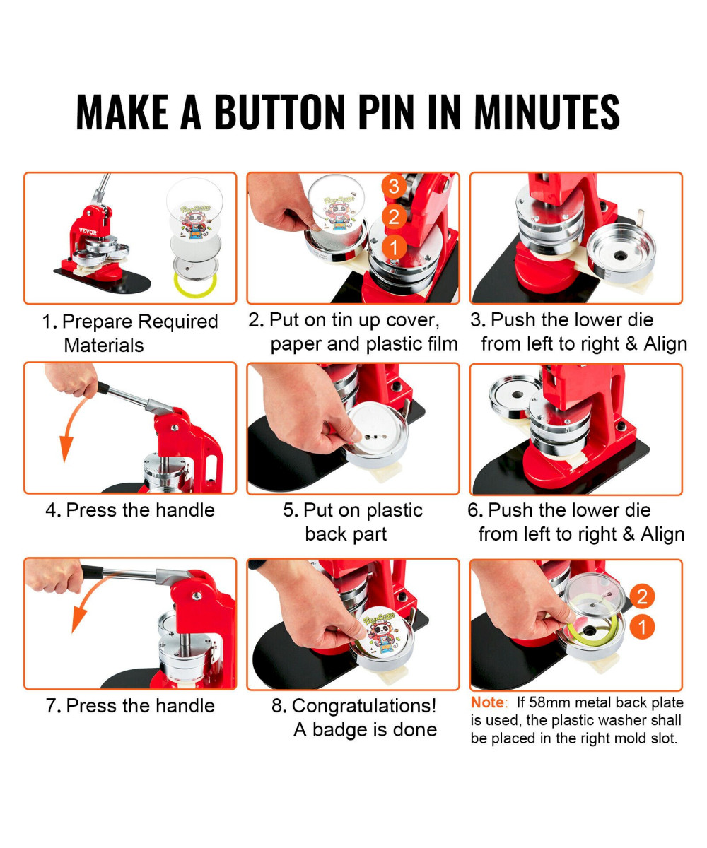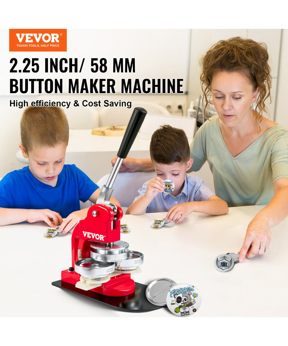 VEVOR Buttonmaschine 58 mm + 500 Stk. Blechdeckel Knopfmachermaschine Buttonpresse