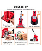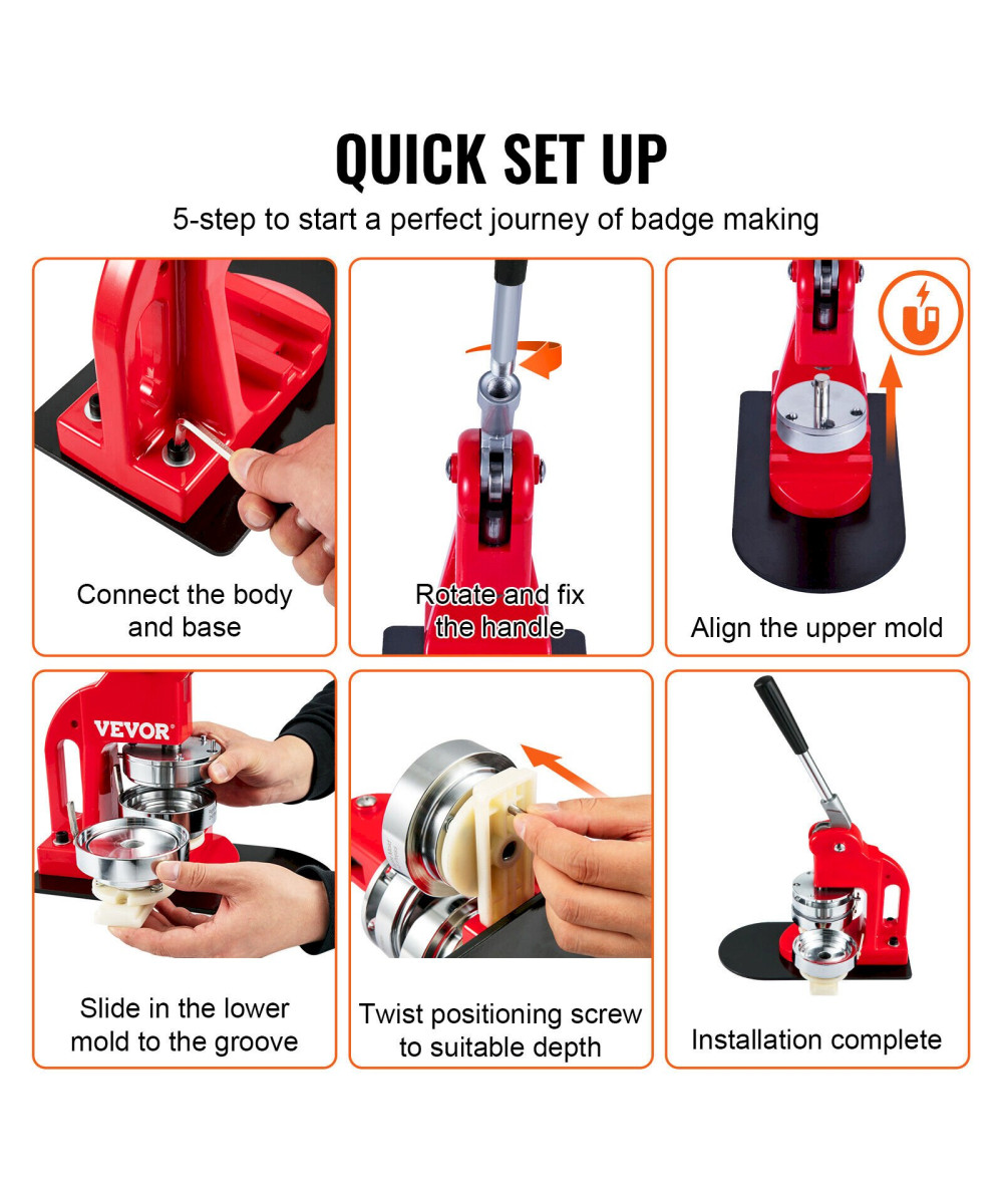 Einfache Bedienung: Das Benutzerhandbuch enthält eine ausführliche Bedienungsanleitung, die erklärt, wie man Formen installiert und Abzeichen herstellt. Die Bedienung ist einfach. Glauben Sie uns, Sie werden es schnell lernen! Die solide Struktur macht Ihre Reise zur Herstellung von Ansteckern sicherer und bequemer. Machen Sie sich bereit, mit der Herstellung zu beginnen!