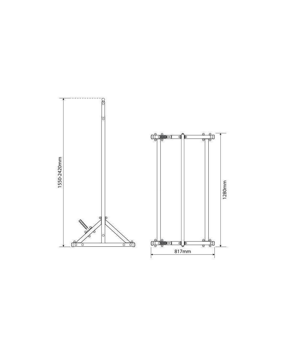 Die Höhe der Klimmzugstange kann an die Körpergröße des Benutzers oder die Art der ausgeführten Übung angepasst werden. Die Mindesthöhe beträgt 156 cm und die maximale Höhe 246 cm.
