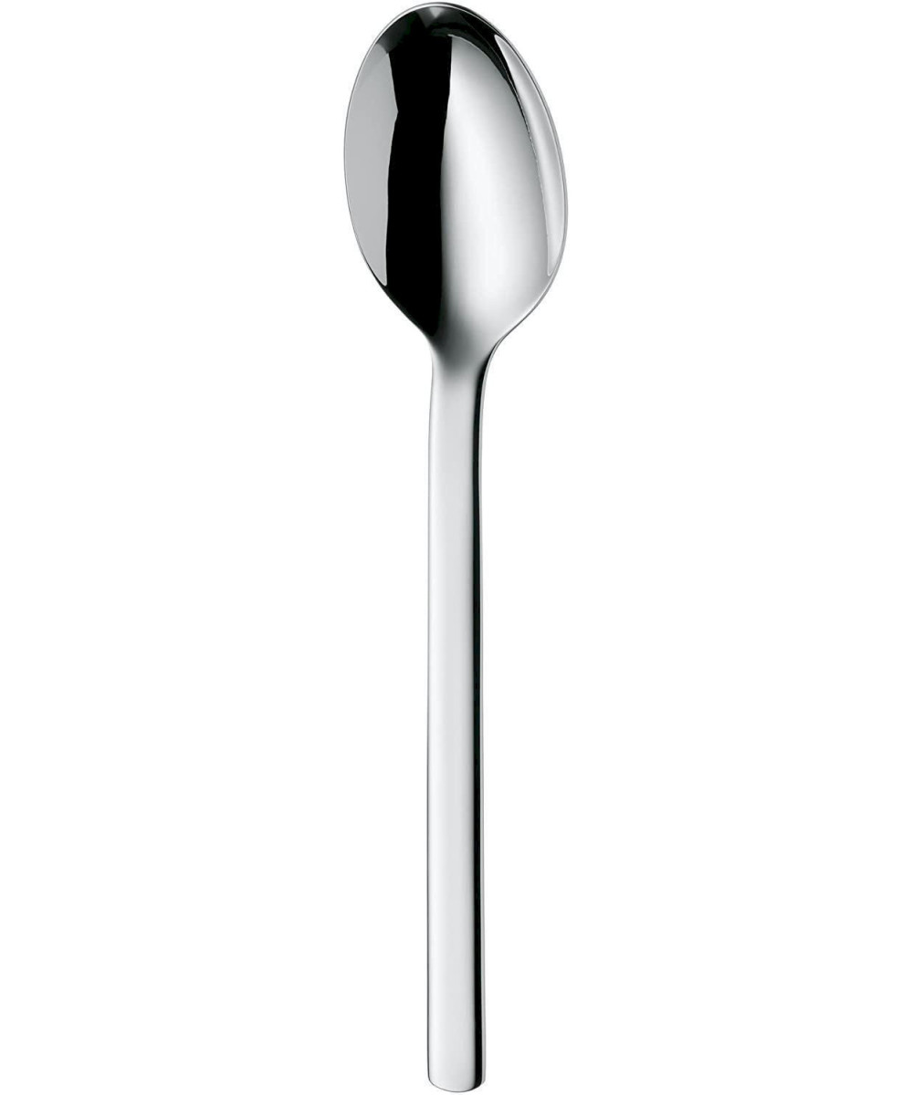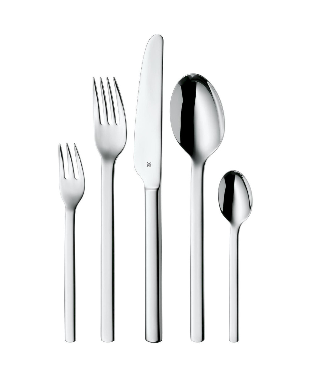 Schlicht und sachlich wirkt das WMF Besteck Dune von Designer Robin Platt. Die gerade, parallele Linienführung mit sanft abgerundeten Kanten verleiht ihm einen modernen, zurückhaltenden Look. Auffällig ist die markant abgesetzte Klinge der Monoblocmesser.