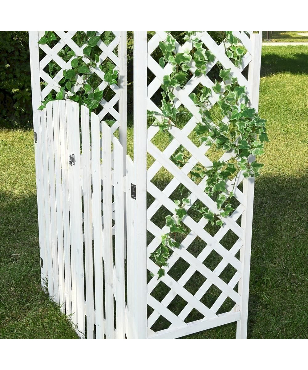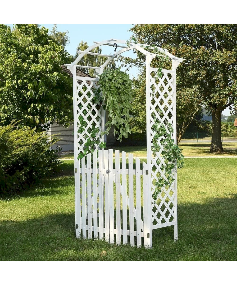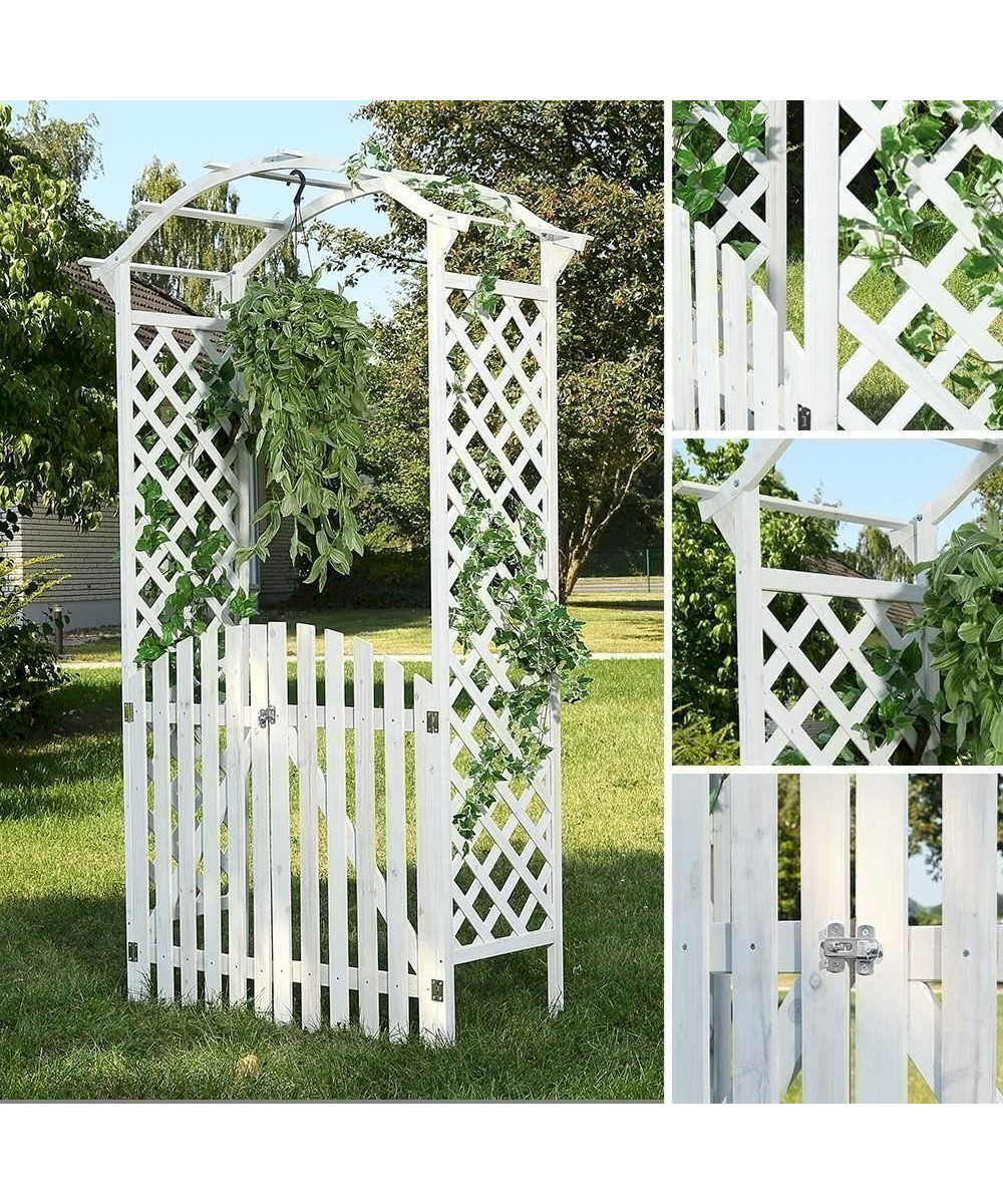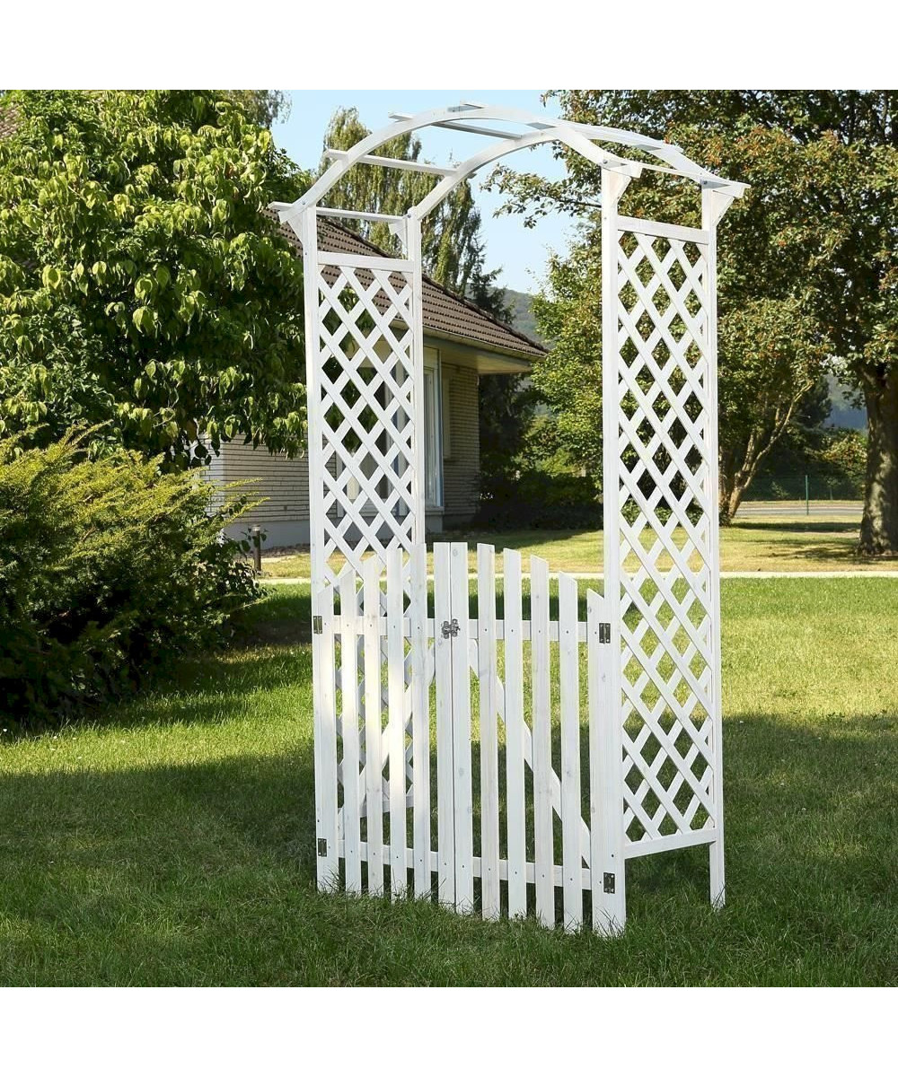 Mucola 50003204 Rosenbogen + zwei Türen Weiß Holz Rankgitter Gartentür Laubengang Garten Tor