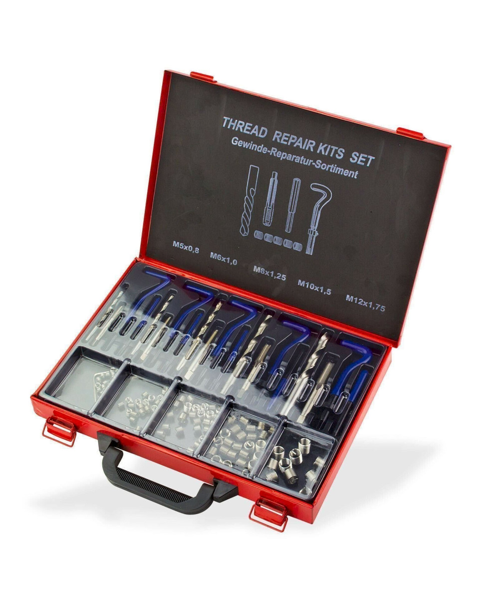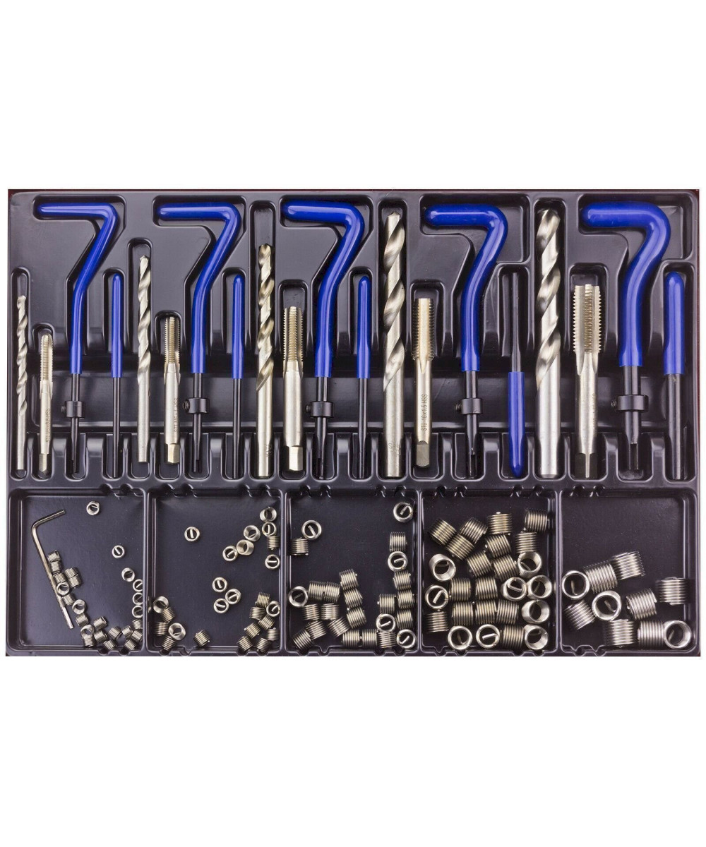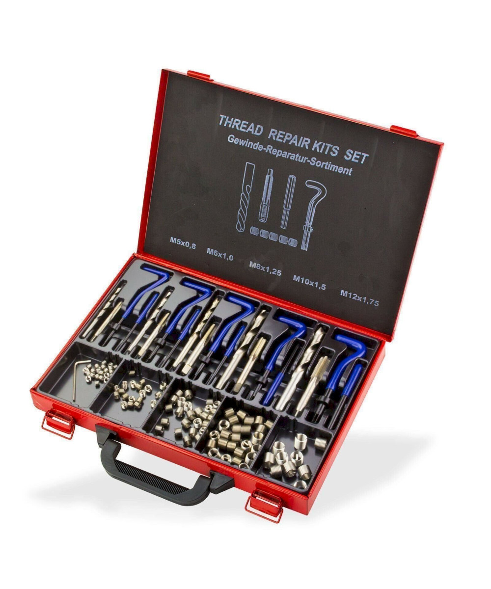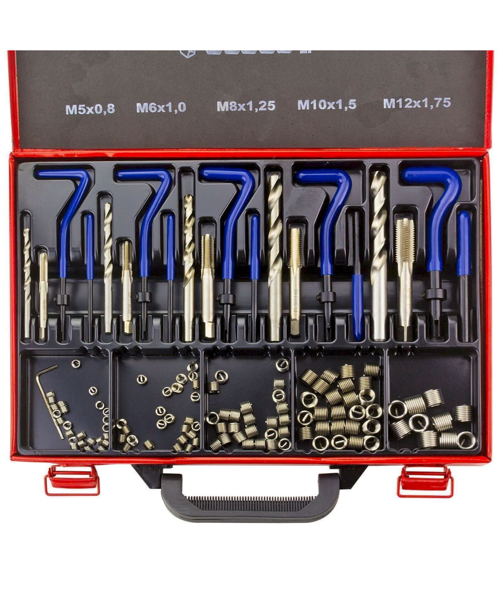 - 100x Gewindeeinsätze: je 25 Stck. M5x0,8 / M6x1,0 / M8x1,25 / M10x1,5