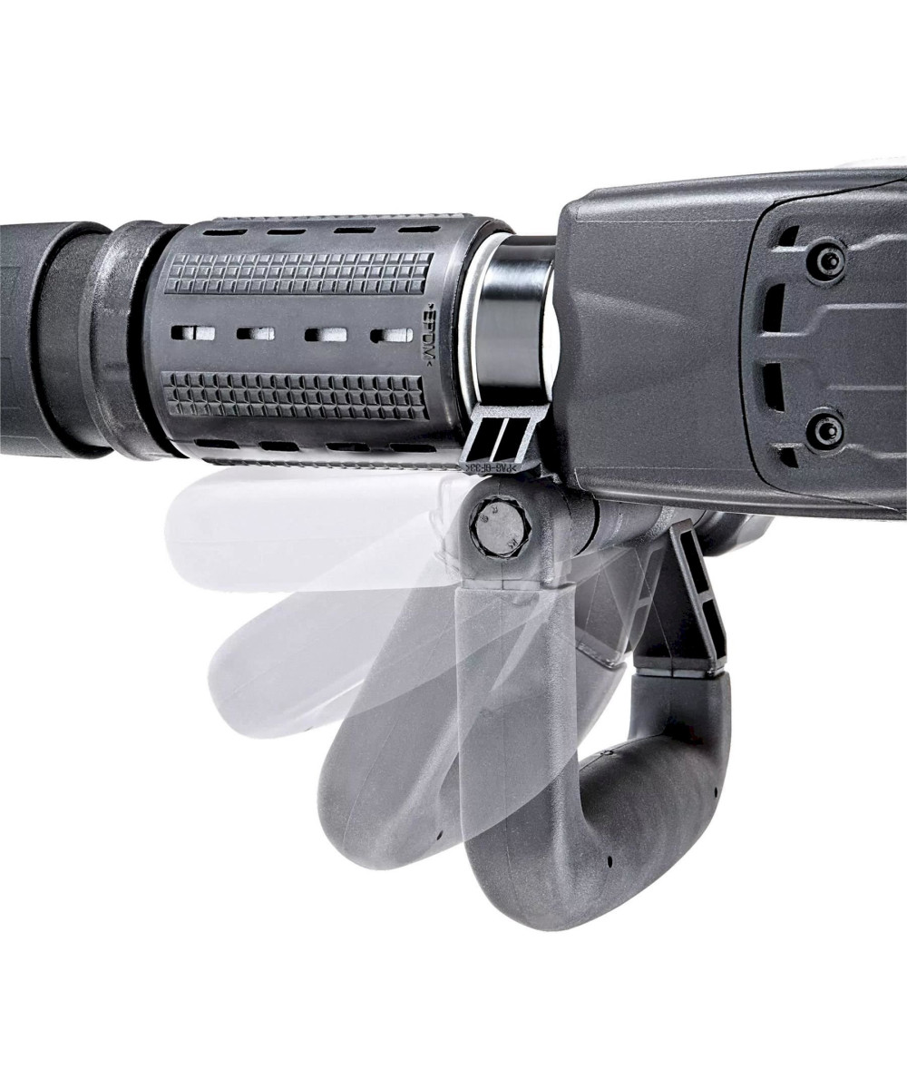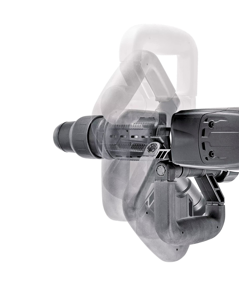 - Mit Seitenhandgriff, radial und axial schwenkbar und vibrationsgedämpftem Handgriff