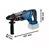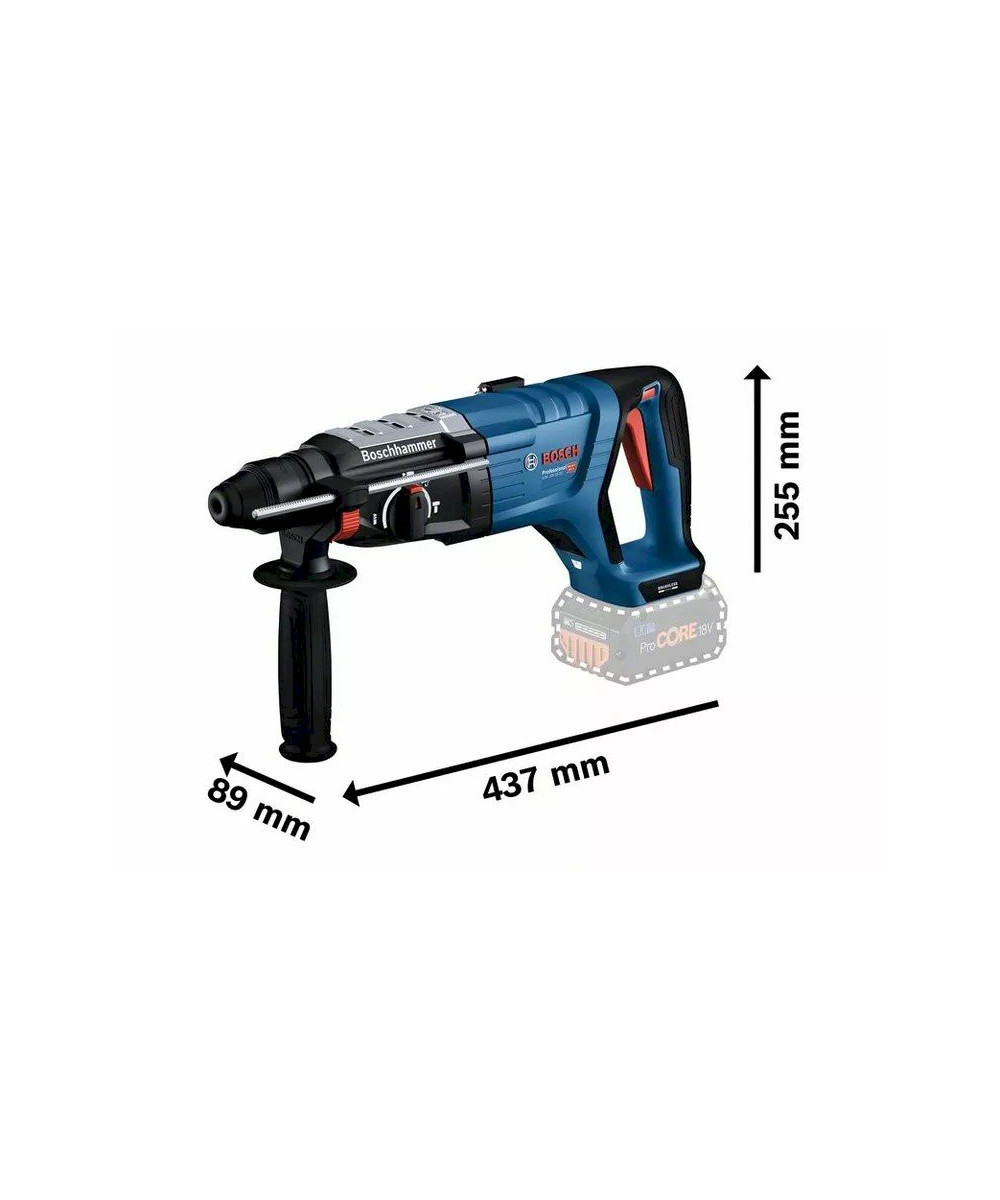 - Kabelfreie, stärkere Leistung als beim kabelgebundenen GBH 2-28; bürstenloser Motor liefert 3,4 J Schlagenergie und ein Leistungs-Gewichtsverhältnis von 1,1 J/kg