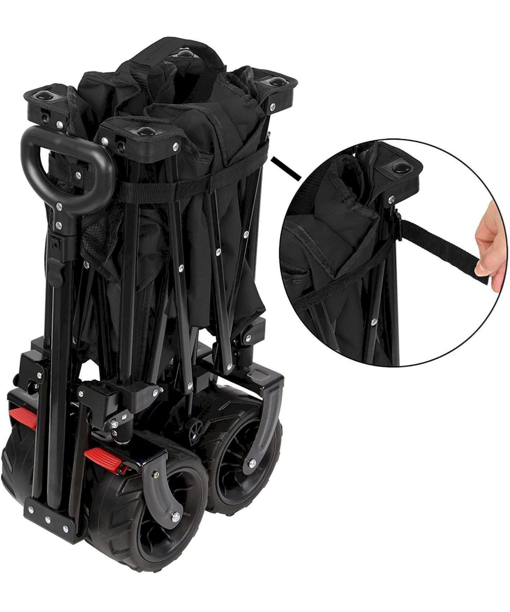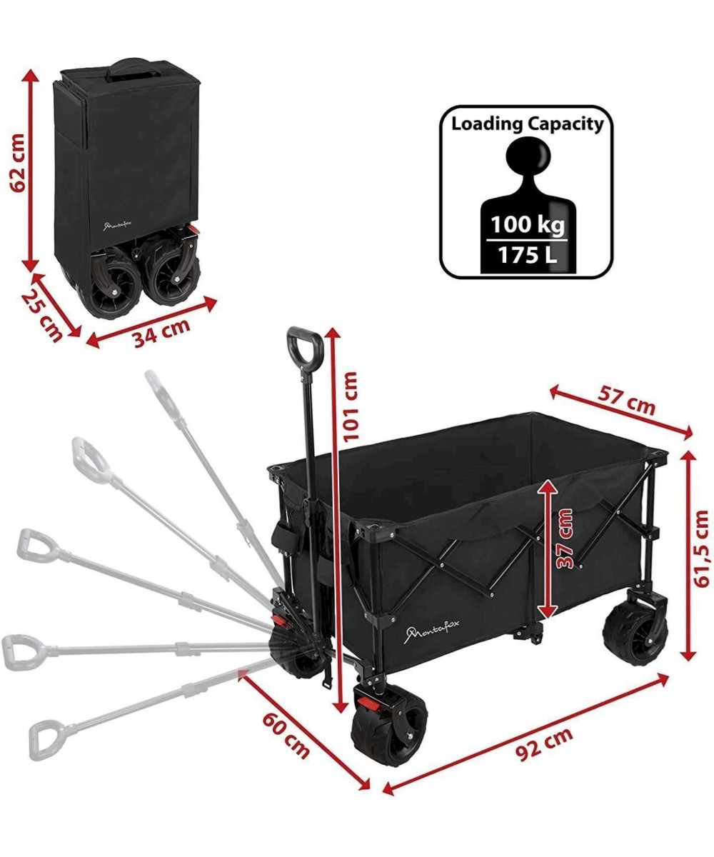 Mit unserem zusammenklappbaren Transportwagen kann man problemlos Gegenstände transportieren. Ob Gartengeräte, Campingutensilien, Kinderspielsachen oder Lebensmittel, er wird Sie in vielen Lebenslagen unterstützen und vom schweren Schleppen befreien.