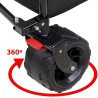 Durch die breiten Reifen lässt er sich einfach ziehen und lenken, außerdem sorgen diese für ruhige Laufeigenschaften. Durch die mehrfach verstellbare Lenkstange lassen sich auch unterschiedliche Winkel leicht überbrücken. Nach Benutzung kann man ihn einfach zusammenfalten und mit Hilfe der mitgelieferten Abdeckhülle gegen Verstauben schützen.