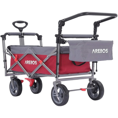 Der faltbare Bollerwagen ist ein wahres Multitalent unter den Transportwägen. Während er mit seiner Ladefläche, dem zusätzliche XXL Tasche am Heck und diversen Halterungen ordentlich Platz für Ausflüge mit den Kids, Festivals oder sonstige Freizeitaktivitäten bietet, lässt er sich bei Bedarf kompakt zusammenklappen. Zudem bietet das abnehmbare Dach zuverlässig Schutz vor Sonne und Regenschauern. Hier trifft Funktionalität auf durchdachtes und funktionelles Design.