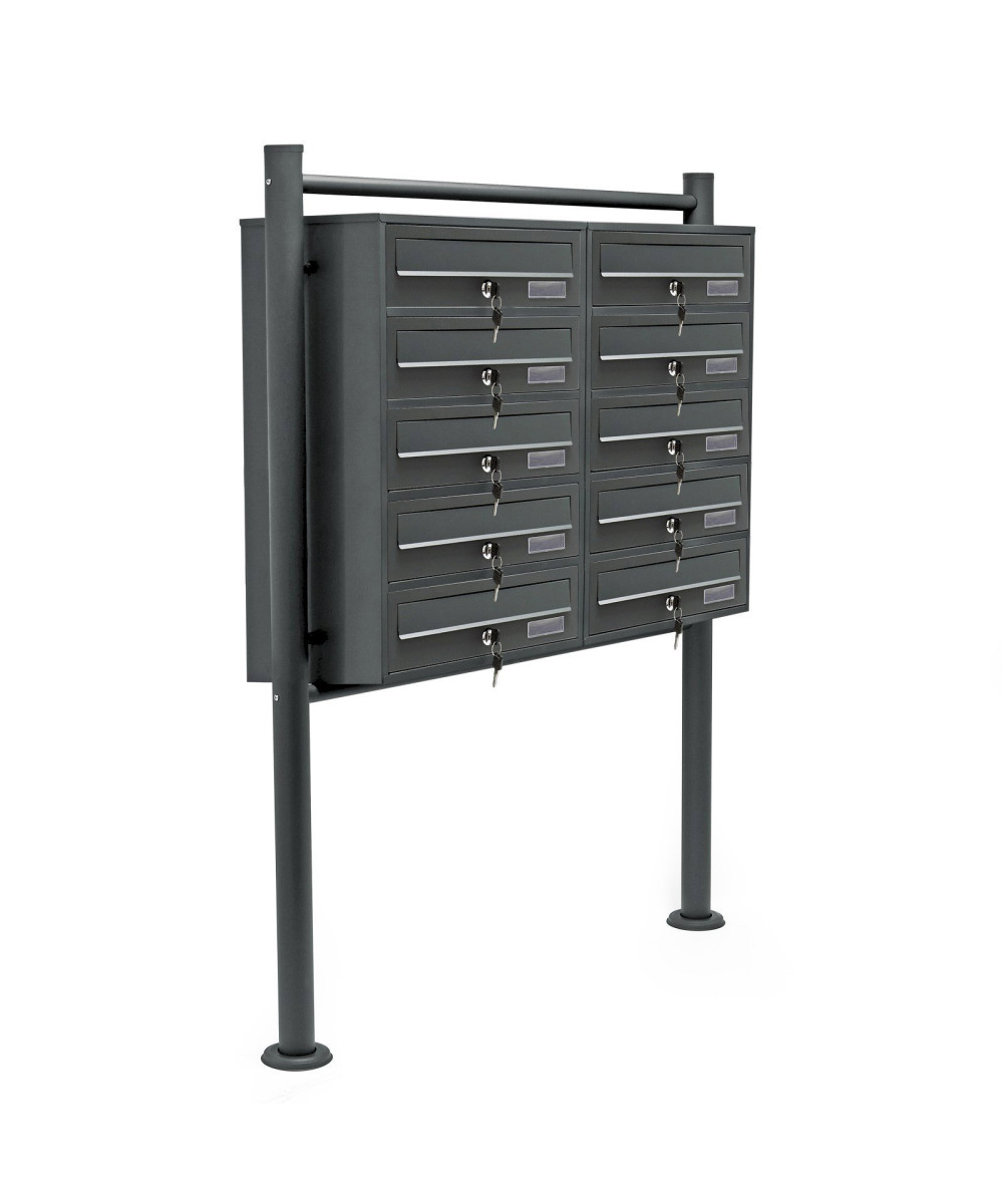 WilTec 10er Briefkastenanlage 2x5 Fächer Standbriefkasten Postfach anthrazit