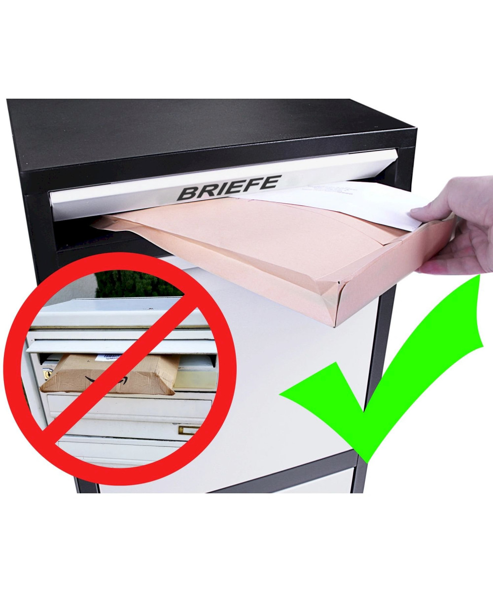Pakete, Päkchen, Warensendungen und Briefe können vom Postboten einfach und kontaktlos in die Klappe eingeworfen werden und fallen beim Schließen in den Paketsafe. Dank einem Klappensystem sind die Briefe und Päckchen ab sofort von der Klappe aus nicht mehr zugänglich. Wenn Sie nach Hause kommen können Sie dann den Paketsafe mit dem Schlüssel öffnen und Ihre Briefe und Pakete entnehmen, die dort vor Regen, Witterung und Dieben geschützt sofort für Sie bereit liegen.