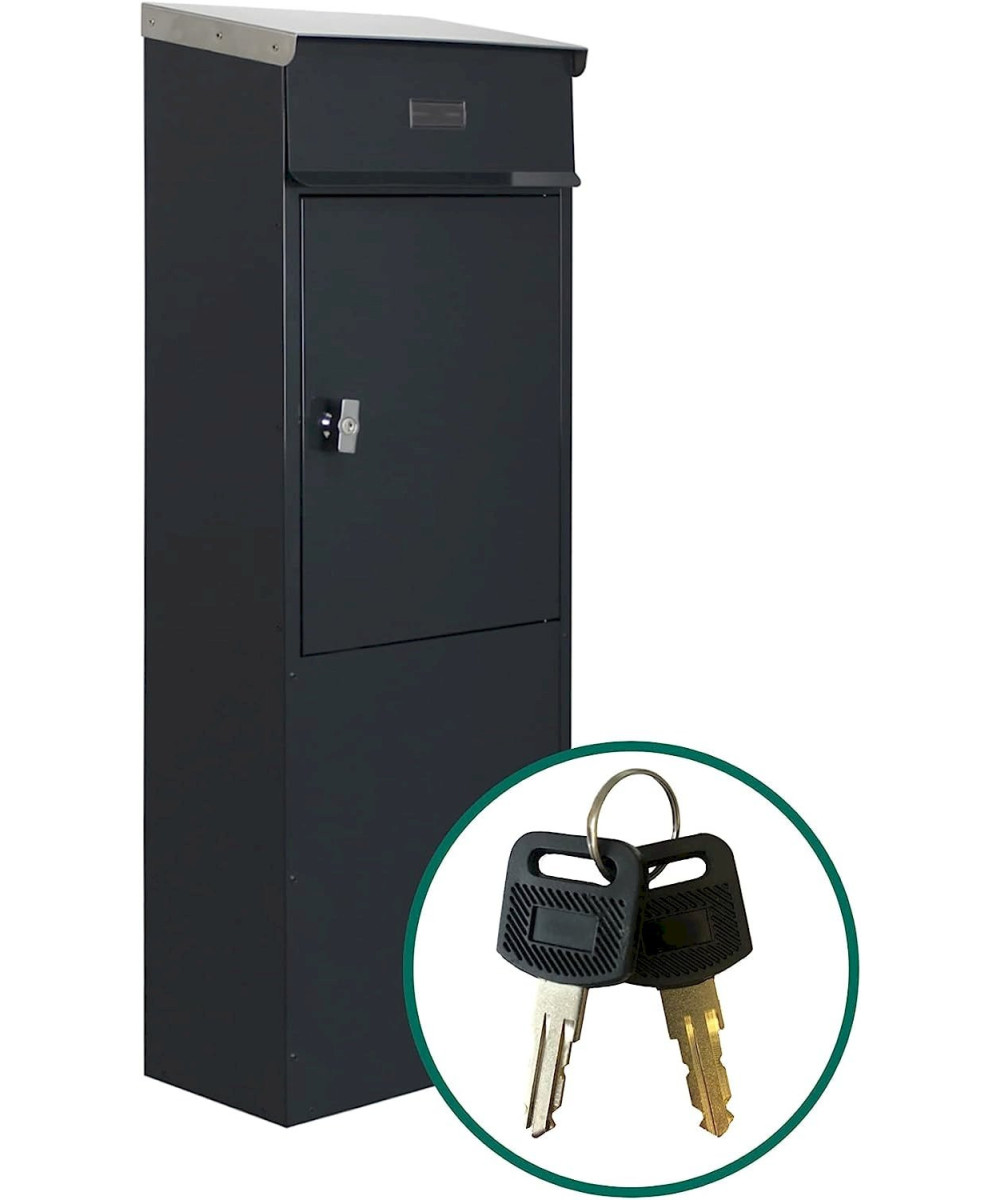 - Diebstahlschutz: inkl. Montagesystem zur Bodenverankerung, damit der Briefkasten nicht einfach mitgenommen werden kann.