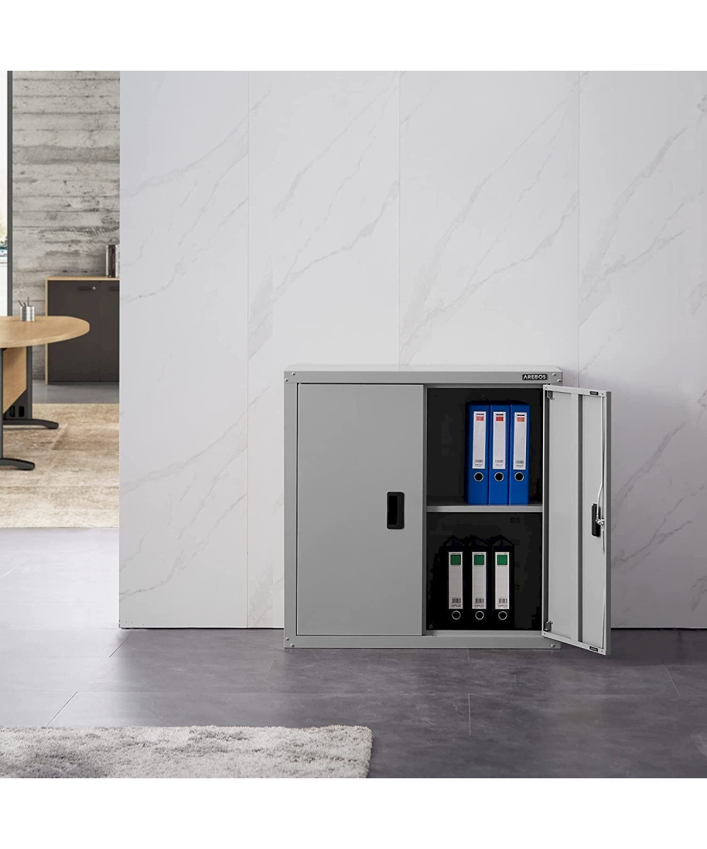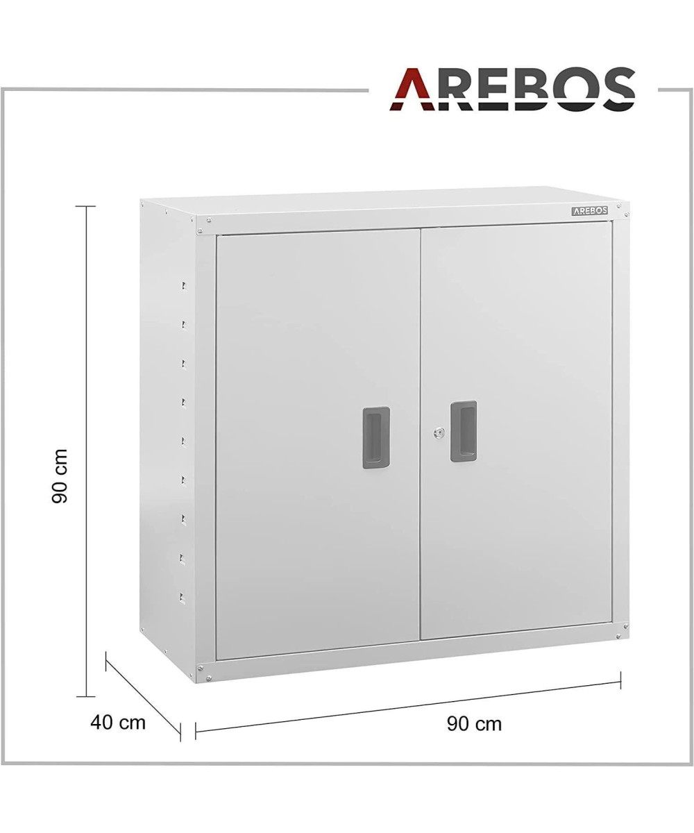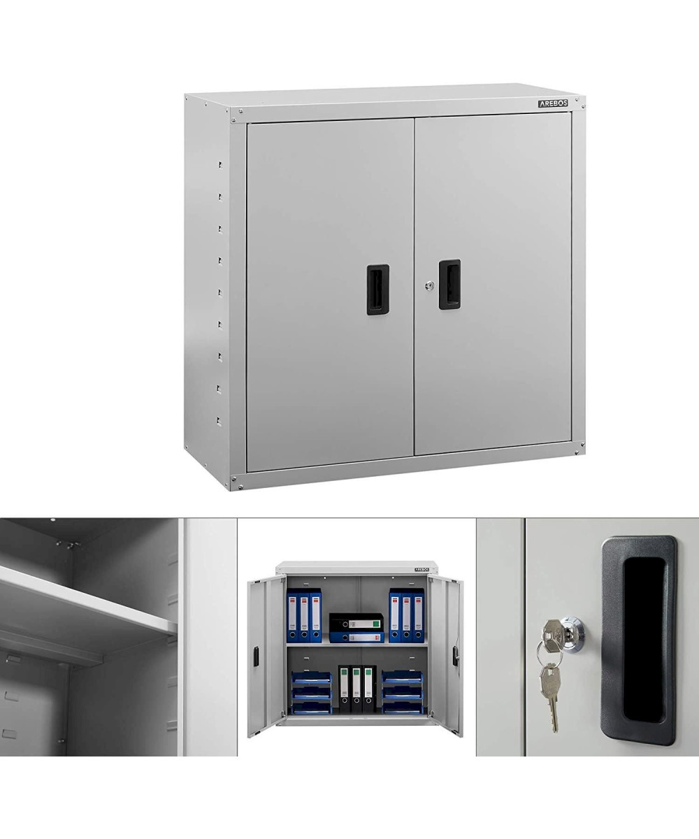 Der Aktenschrank hat die kompakten Maße von ca. 90 x 40 x 90 cm (LxTxH) und überzeugt durch seine solide Verarbeitung und Vielseitigkeit. Der individuell höhenverstellbare Einlegeboden macht diesen Mehrzweckschrank höchst flexibel. So können Aktenordner, wichtige Unterlagen, Büromaterial, Werkzeug uvm., dank abschließbarer Türen, sicher und vor Verschmutzungen geschützt aufbewahrt werden.