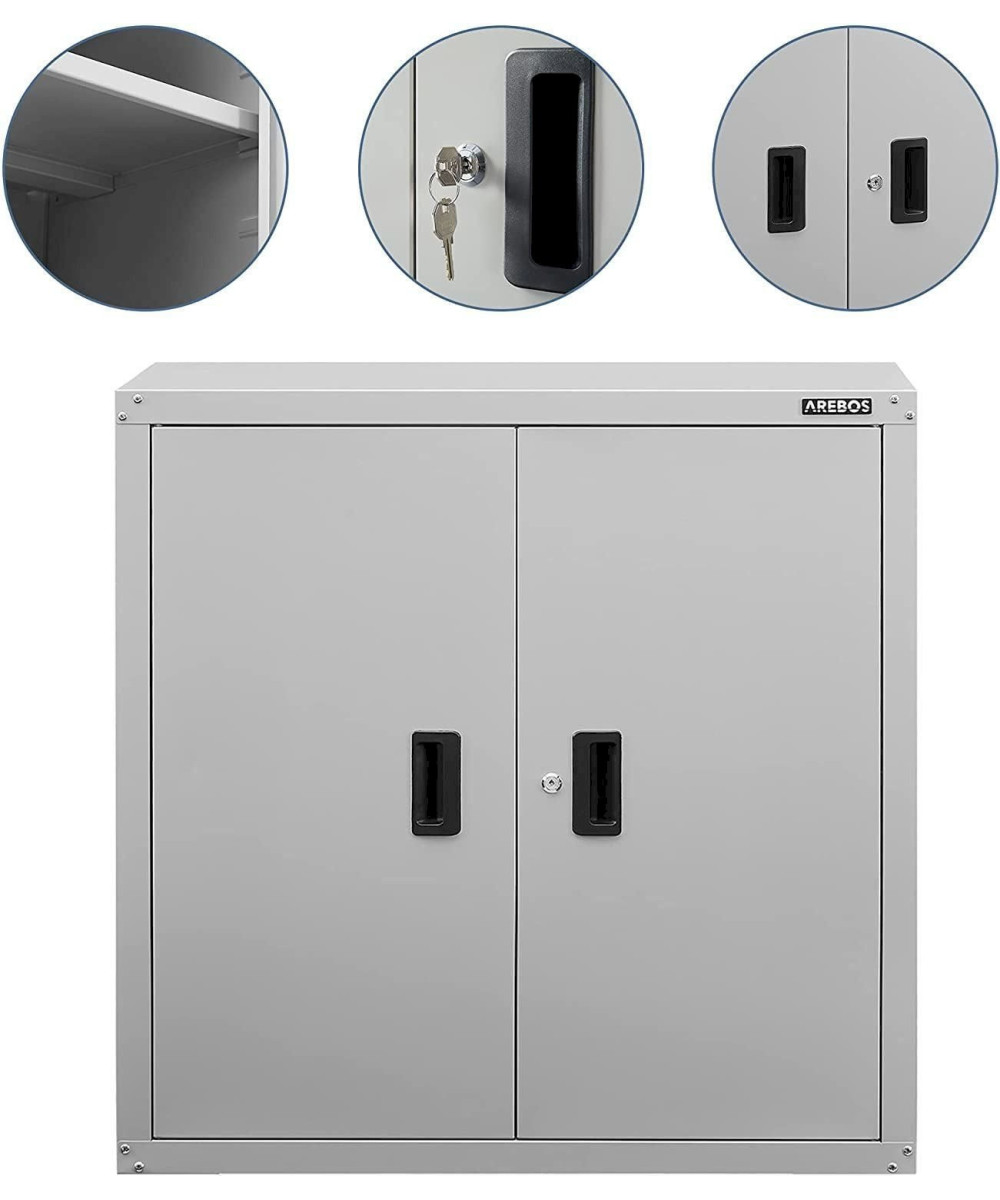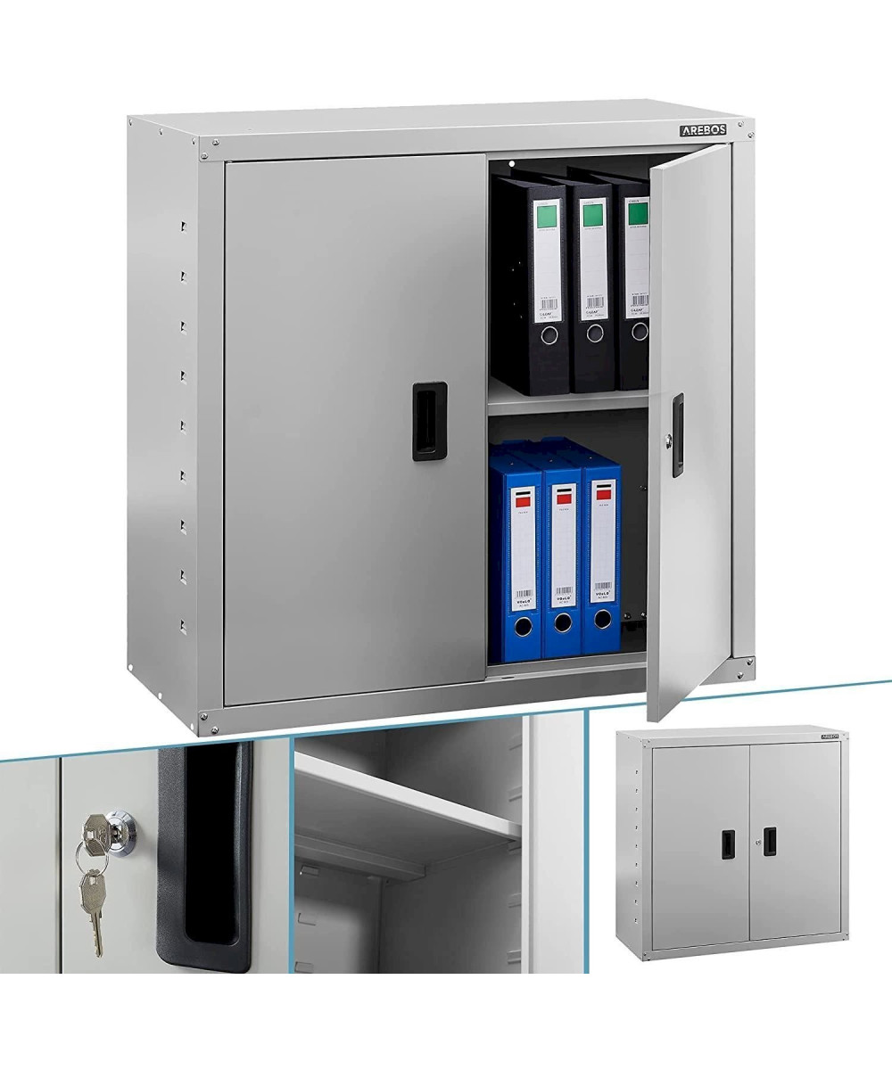 Die beiden Türen schützen den Schrankinhalt vor neugierigen Blicken, Langfingern und Schmutz. Die Türen sind mit einem soliden Zylinderschloss inklusive 2 passenden Schlüssel ausgestattet.