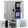 Durch die Pulverbeschichtung sind Korpus und Türen überaus robust gegen Kratzer, Stöße und Korrosion. Dennoch besitzt der Metallschrank nur ein relativ geringes Gewicht auf. Auf den Oberflächen lassen sich Staub, Krümel und andere Verschmutzungen schnell entfernen.