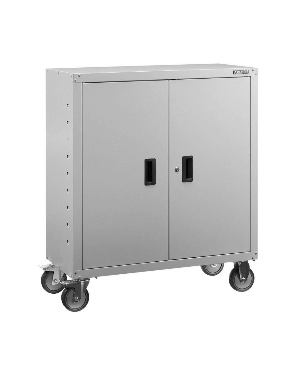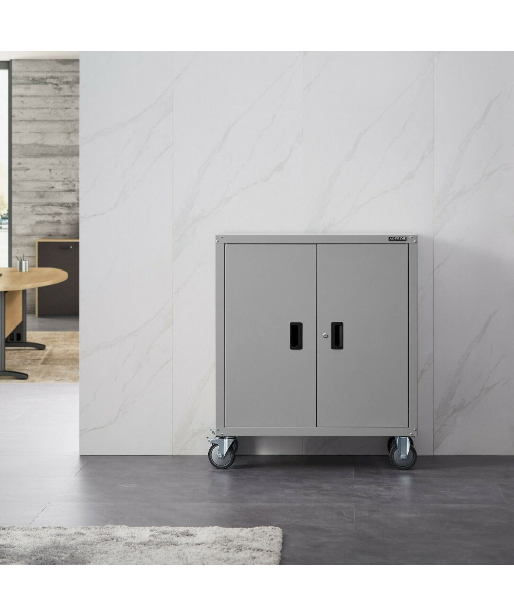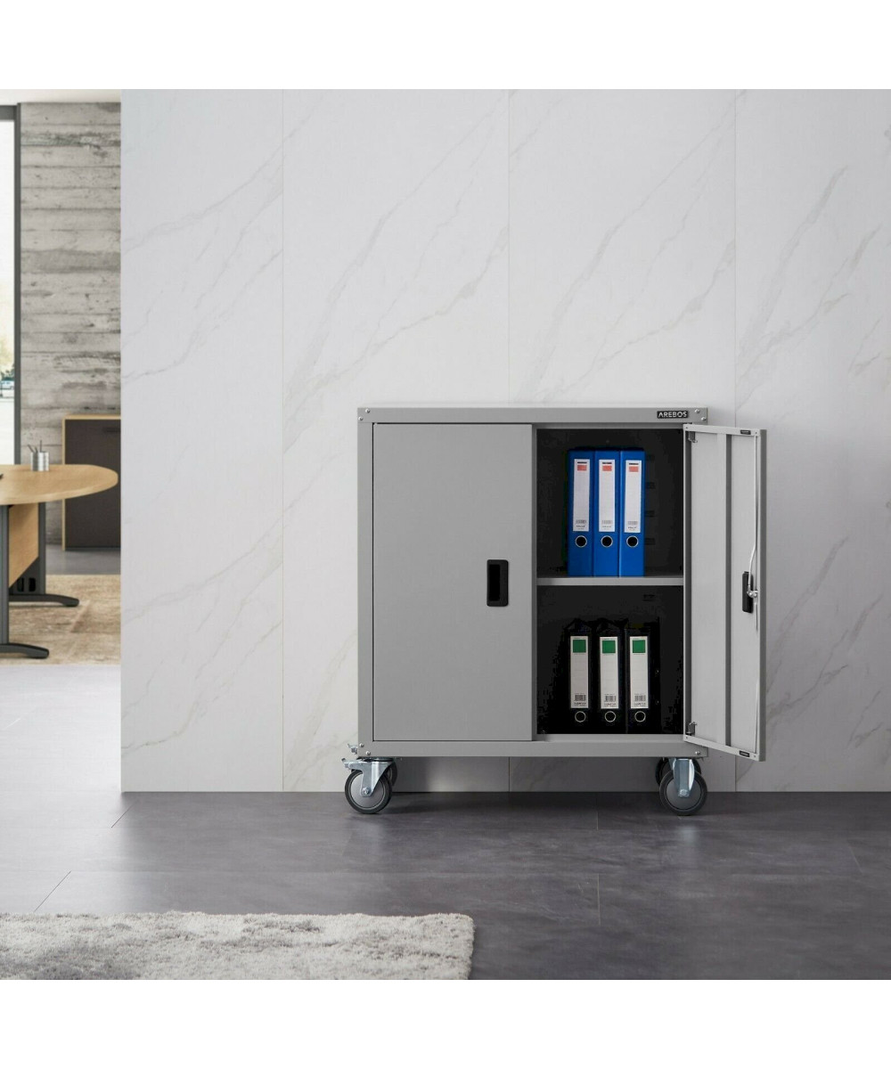 Arebos Aktenschrank in grau mit 4 Rädern 90 x 40 x 90 cm