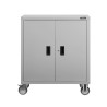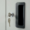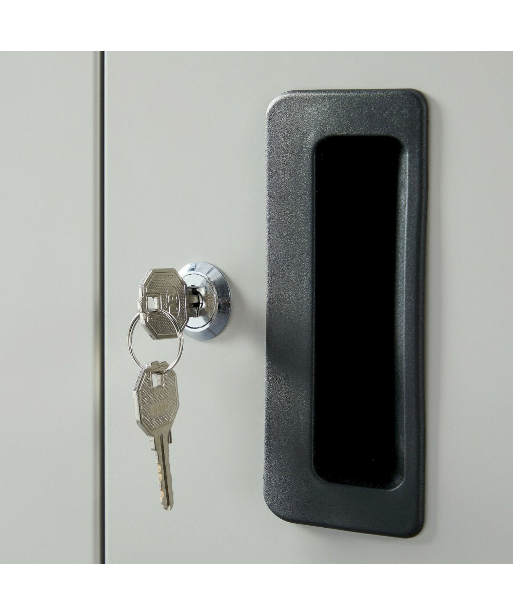 Durch die Pulverbeschichtung sind Korpus und Türen überaus robust gegen Kratzer, Stöße und Korrosion. Dennoch besitzt der Metallschrank nur ein relativ geringes Gewicht auf. Auf den Oberflächen lassen sich Staub, Krümel und andere Verschmutzungen schnell entfernen.