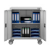 Neben der Bodenplatte steht Ihnen ein zusätzlicher höhenverstellbarer Einlegeboden zum Abstellen von Ordnern und Büromaterial zur Verfügung. Der Fachboden lässt sich mit den mitgelieferten Halterungen in seiner Höhe flexibel anbringen und bietet somit flexiblen Stauraum.