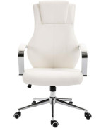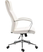 Die komfortable Sitzfläche des Chefsessels ist aus pflegeleichtem Lederimitat (PU) gefertigt und lässt problemlos abwischen. Durch die Gasdruckfeder ist der Stuhl stufenlos in der Höhe verstellbar. Die Armlehnen des Konferenz-Stuhls bestehen aus verchromtem Metall und sind mit einer weichen Polsterung versehen. Der elegante, breite Chromfuß verleiht dem Drehstuhl Stabilität.
