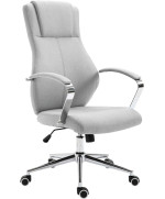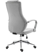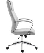 Die komfortable Sitzfläche des Chefsessels ist aus pflegeleichtem Polyester gefertigt. Durch die Gasdruckfeder ist der Stuhl stufenlos in der Höhe verstellbar. Die Armlehnen des Konferenz-Stuhls sind aus verchromtem Metall mit einer weichen Polsterung obendrauf. Der elegante breite Chromfuß verleiht dem Drehstuhl Stabilität.
