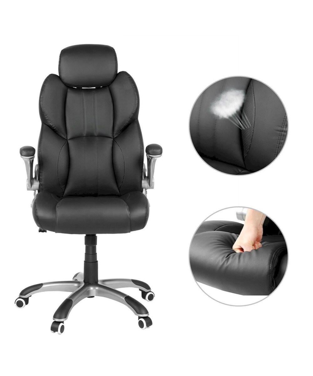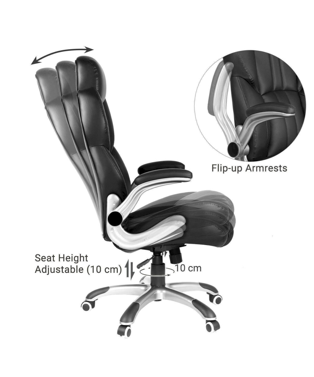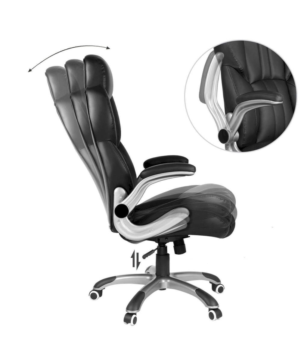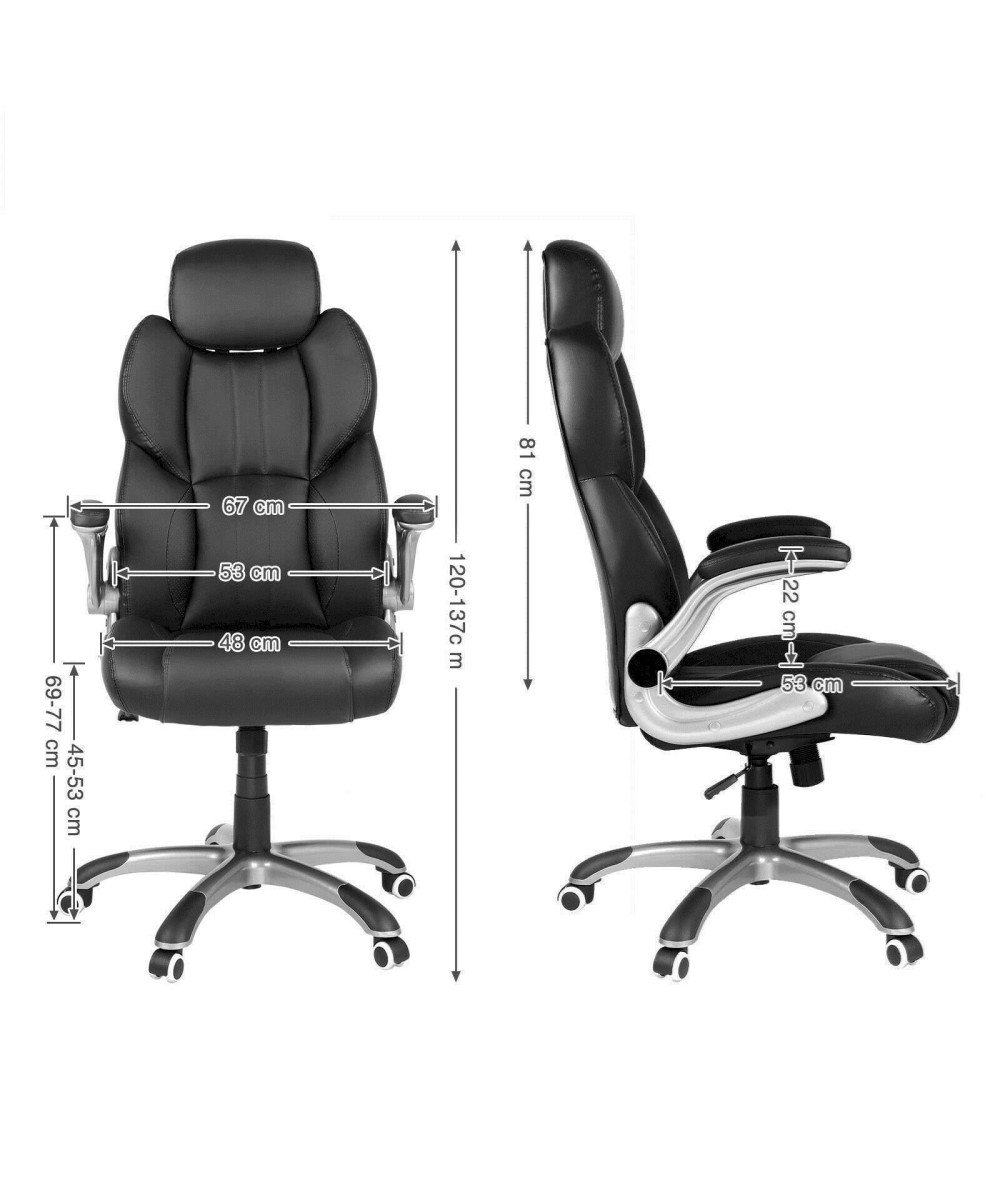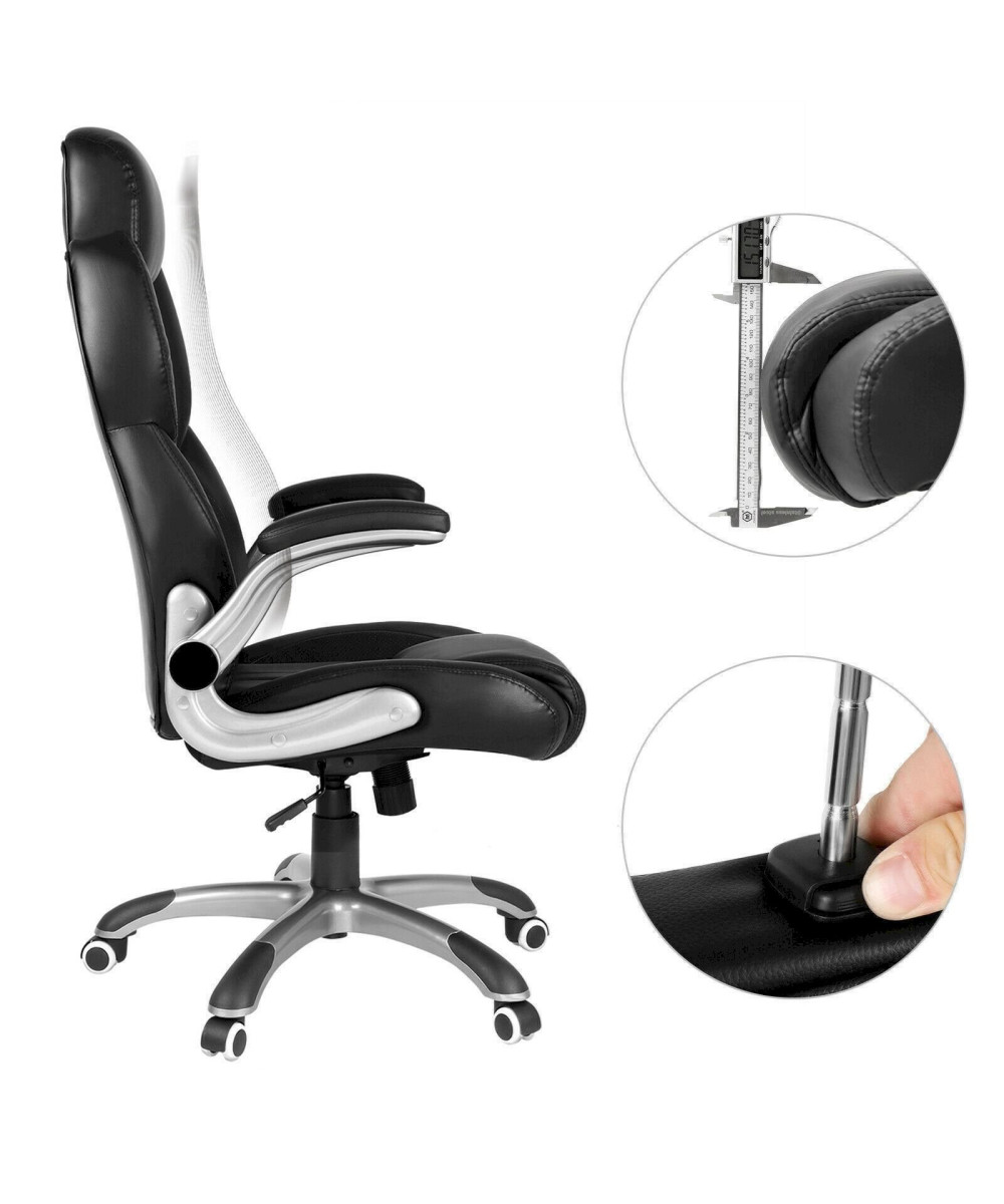 - FLEXIBEL EINSTELLBAR: Spart Platz durch Klappen der schaumstoffgepolsterten Armlehnen. Der Drehstuhl ist höhenverstellbar und kippbar. Der Bonus sind die 3 Positionen der Kopfstützenverstellung wie in einem Autositz