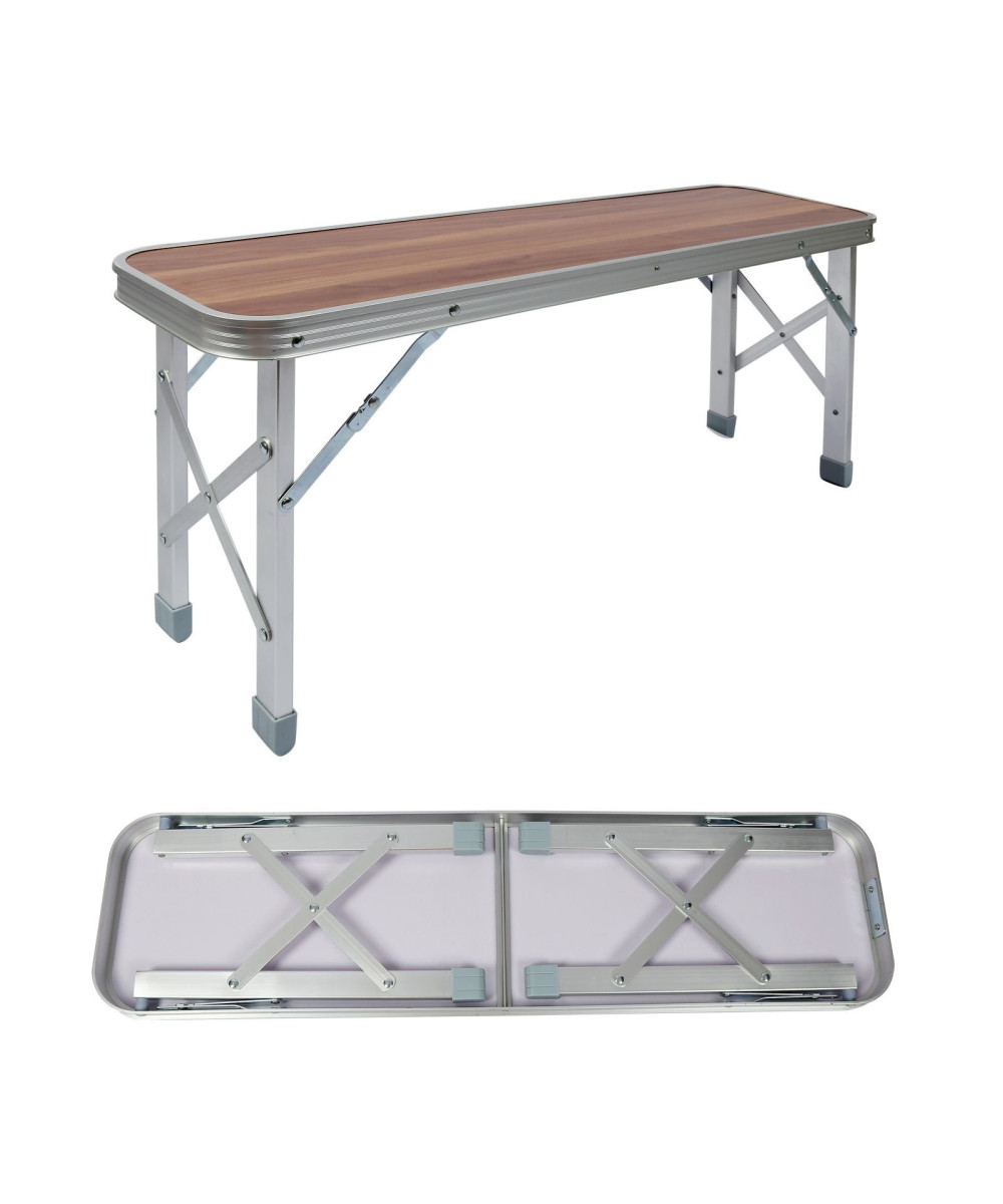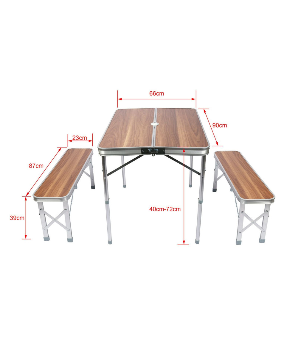 WilTec Aluminium Koffertisch mit zwei Bänken Holzdesign 90×66×70 cm klappbar
